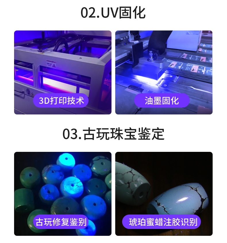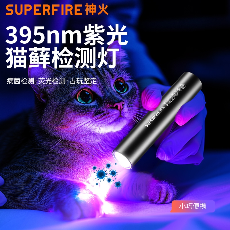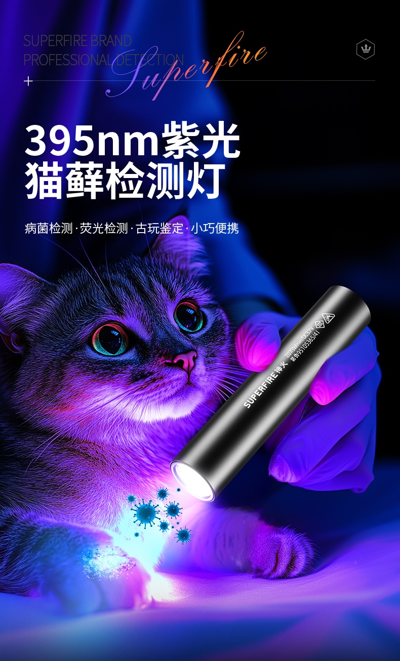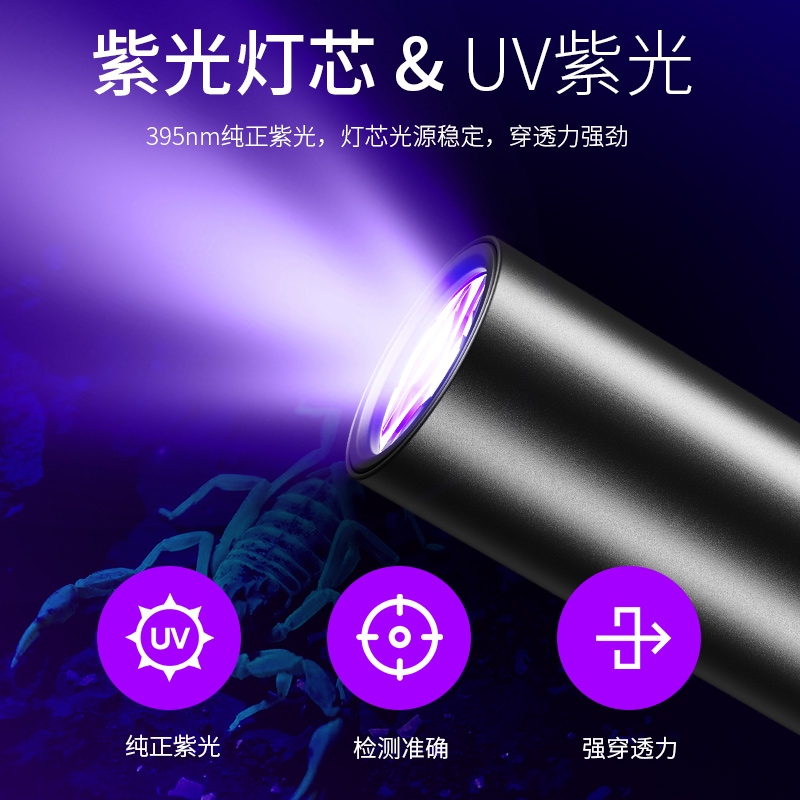 1、紫光手电:可用于验钞、识别荧光剂,宠物荧光检测,鉴别琥珀、蜜蜡,古玩修补鉴定。