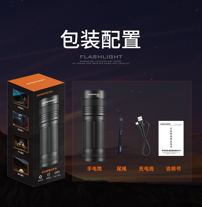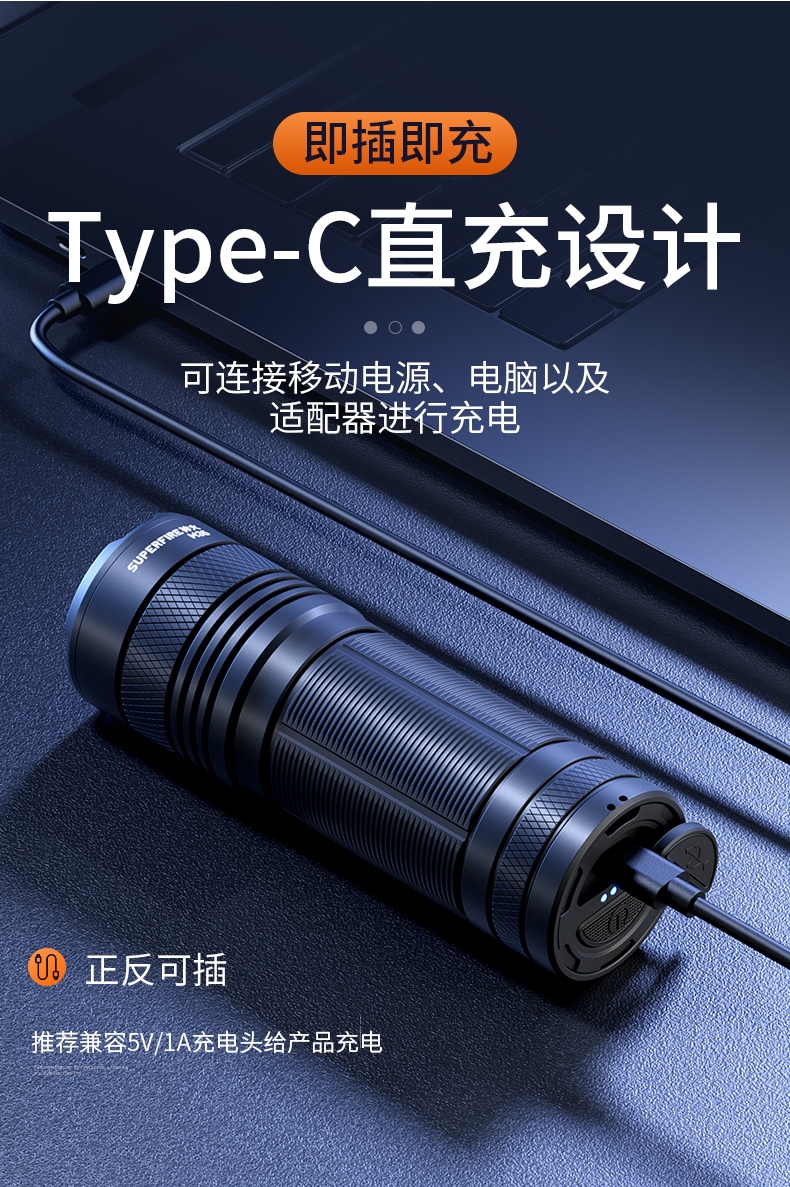 四档调光 Type-C充电 电量显示 铝合金筒身 持久续航 强力防水