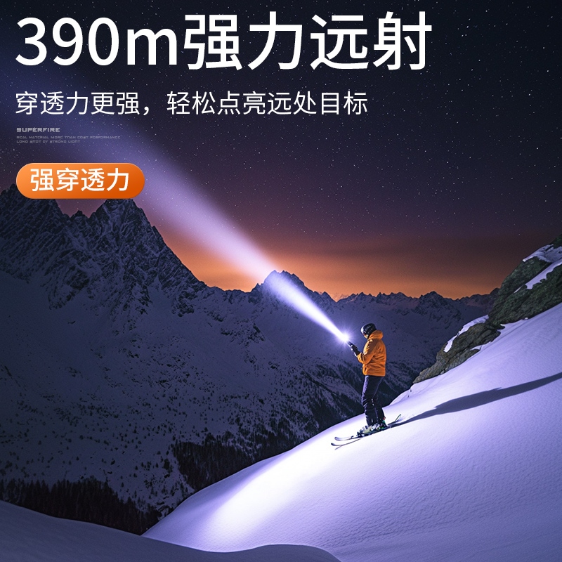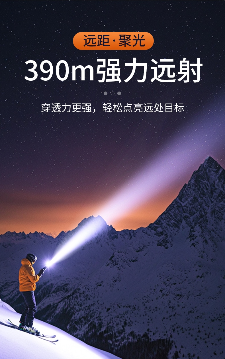 1、千米远射,射程更远,光斑更聚焦。 2、进口灯珠,亮度高,照明效果更好。 3、前后双按键,光源一键点亮,高亮瞬间开启。