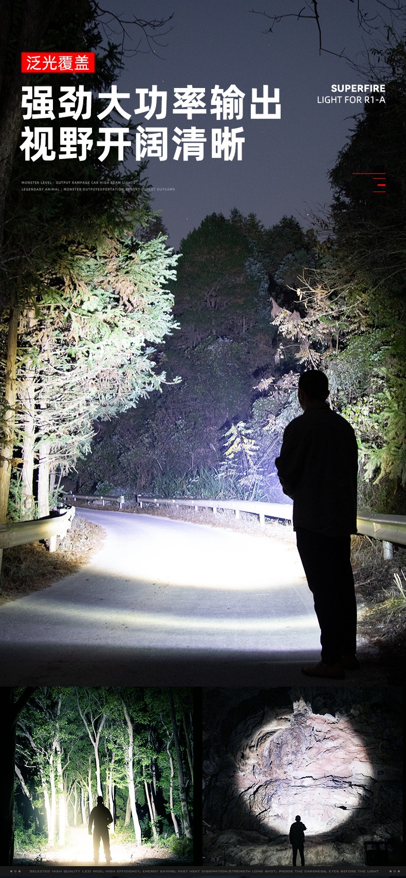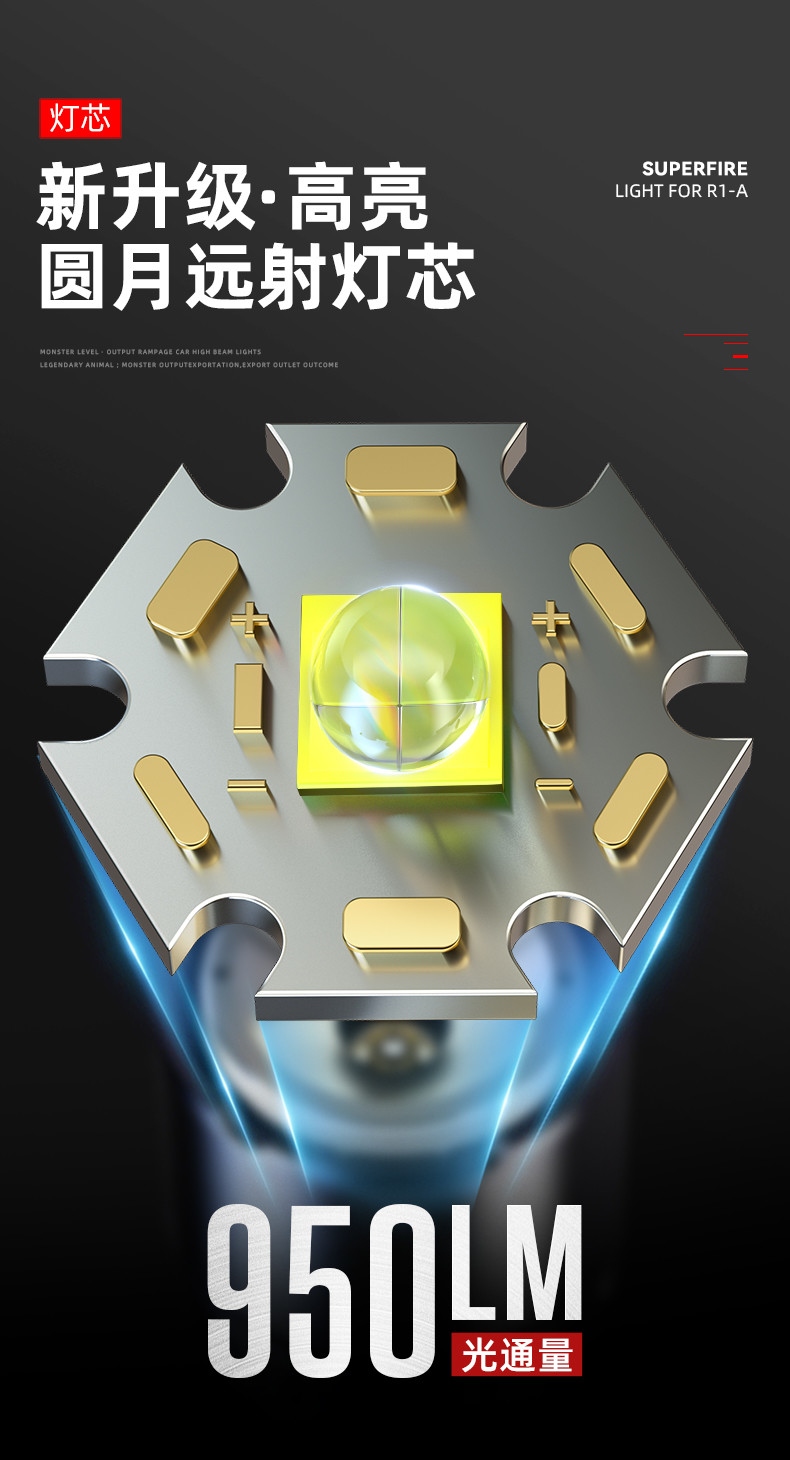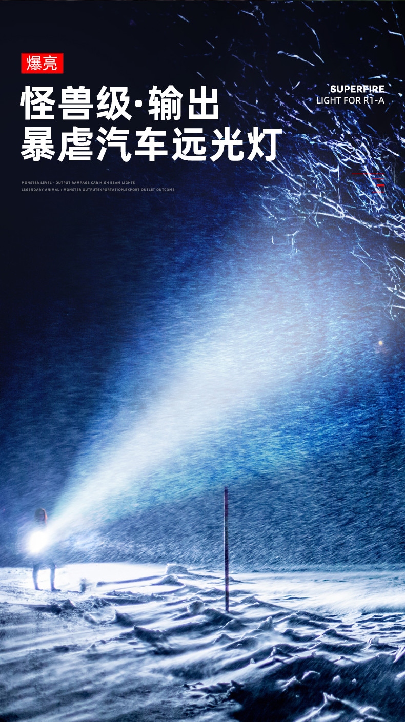 1、千米远射,射程更远,光斑更聚焦。 2、进口灯珠,亮度高,照明效果更好。 3、前后双按键,光源一键点亮,高亮瞬间开启。