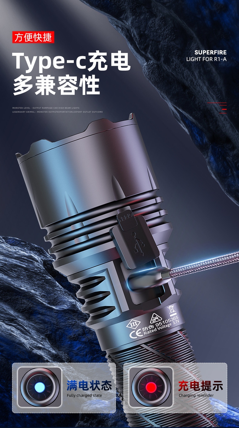 四档调光 Type-C充电 电量显示 铝合金筒身 持久续航 强力防水