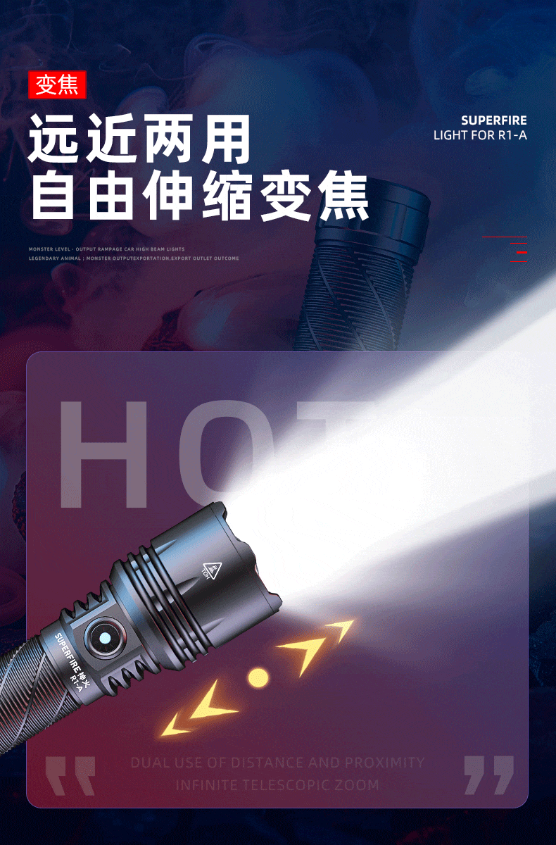 1、推拉灯头可实现伸缩调焦;