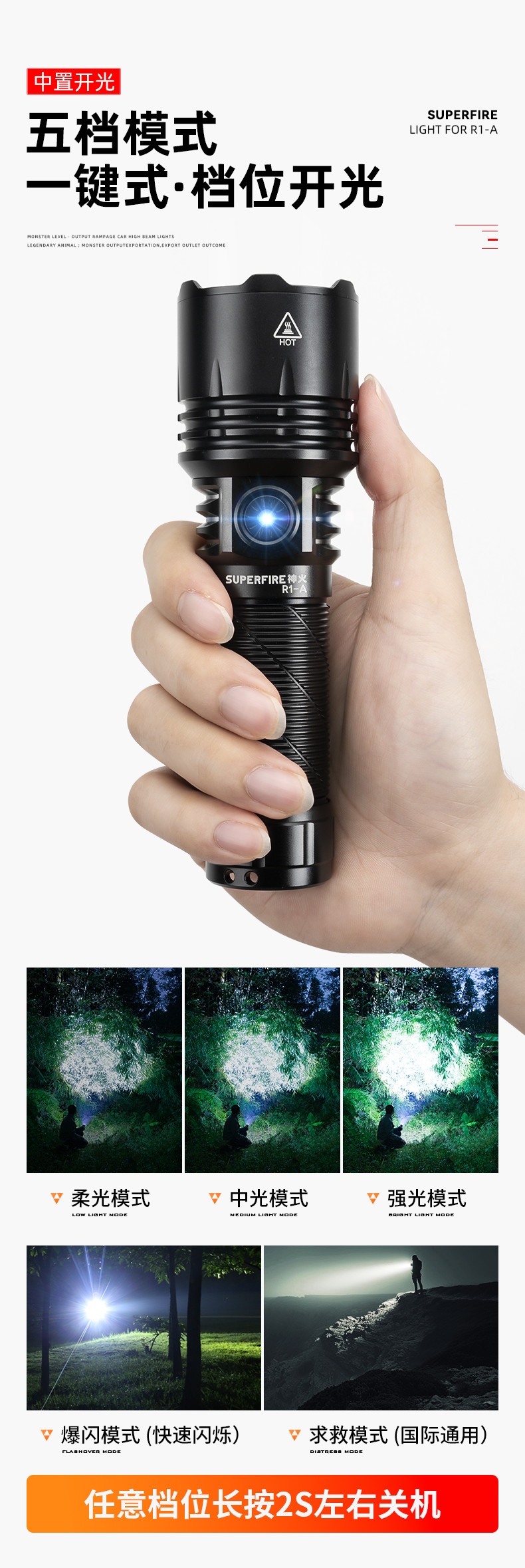 4、多重安全程序,有效延长手电使用寿命;