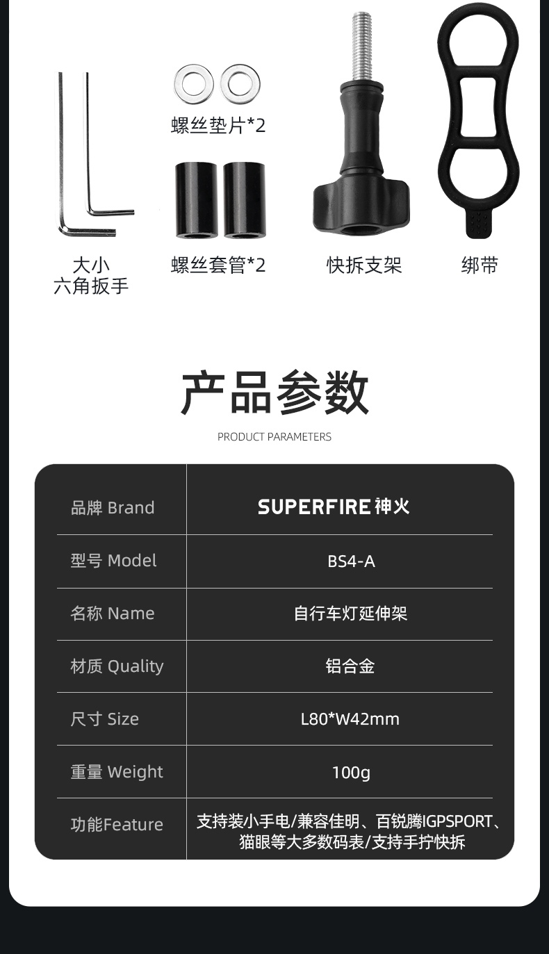 六角螺丝便捷锁定,配置绑带及手电卡座,随心选择车灯类型
