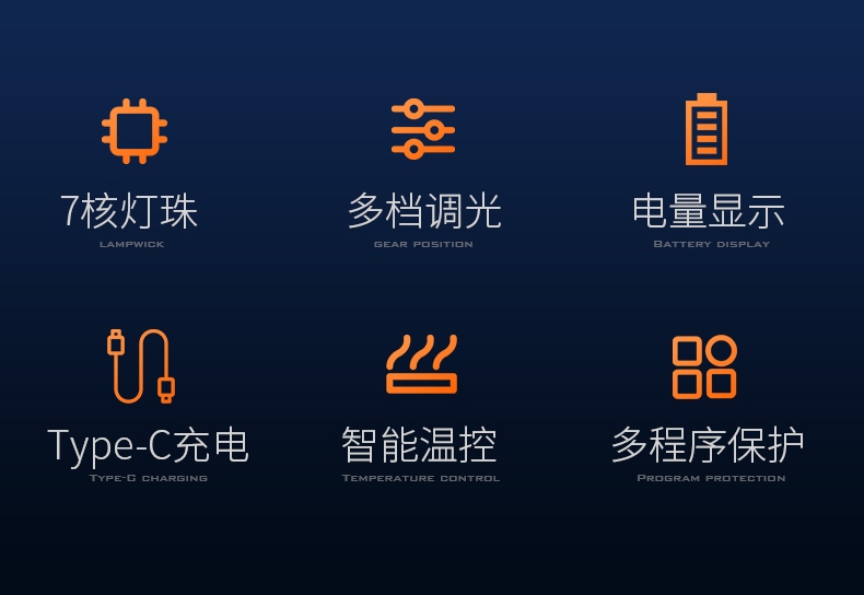 1、六档调光,可满足不同使用场景下的照明需求。 2、进口高亮朗明纳斯灯珠,照明效果更好。 3、含档位记忆,任意档位快捷关机 ,开机恢复关机前档位。