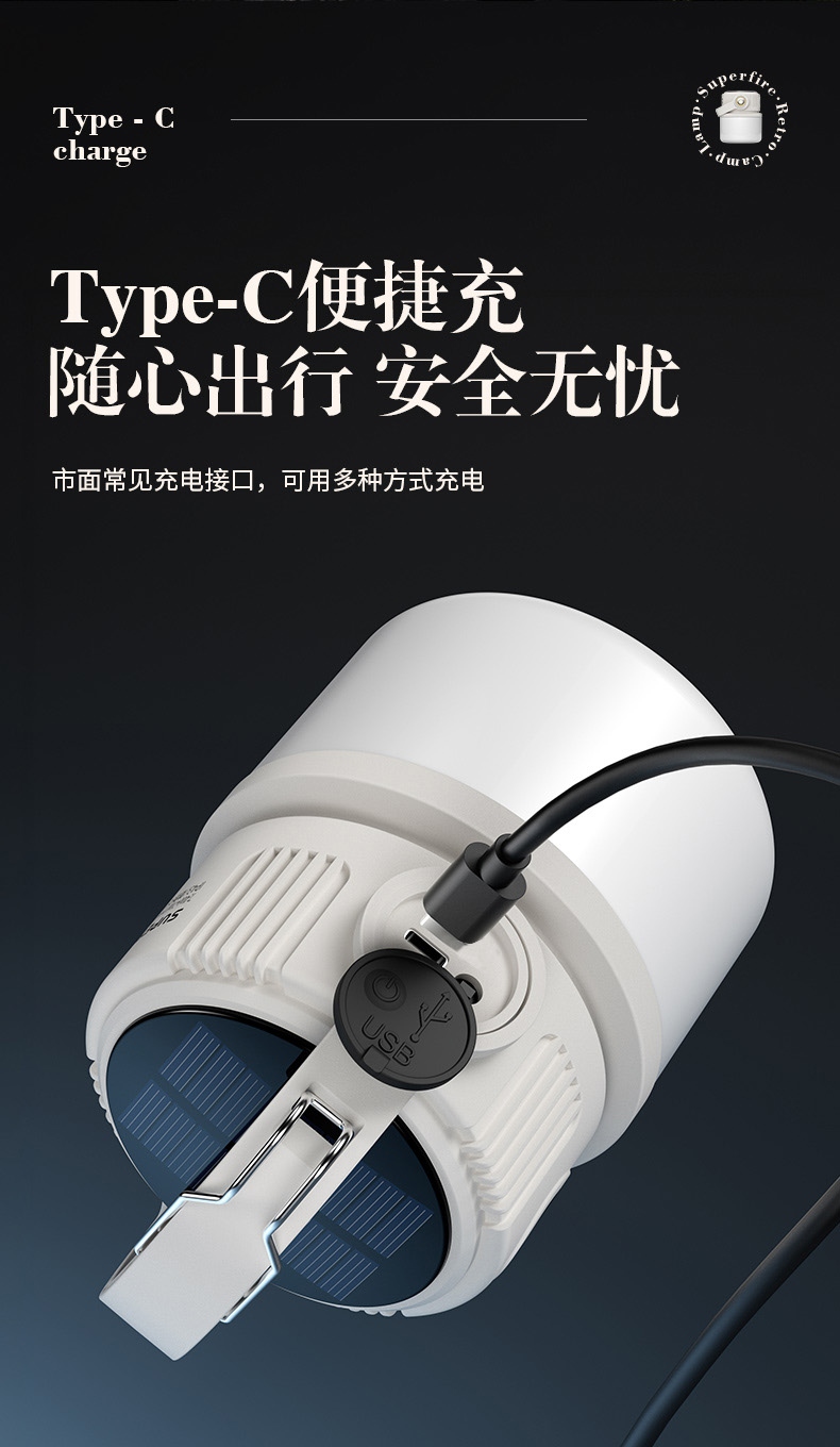 5、多样化充电,使用方便;设有type-c充电接口,可使用充电器、充电宝、电脑等设备为产品充电。