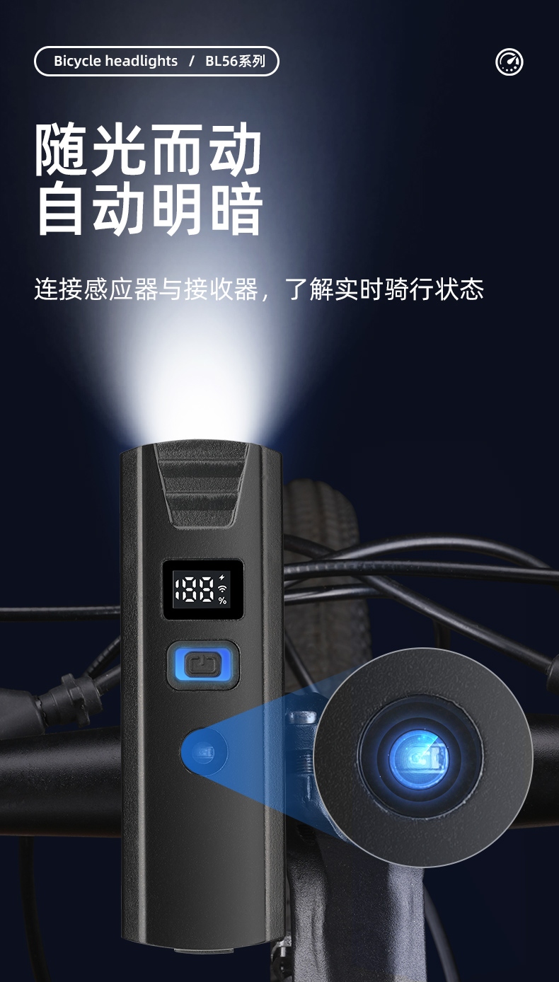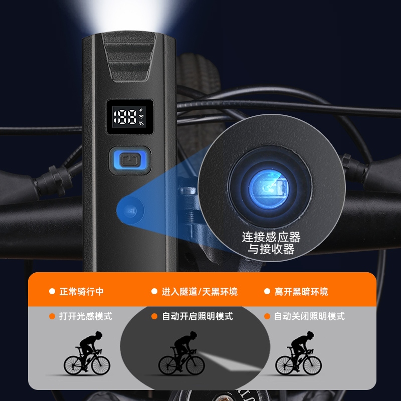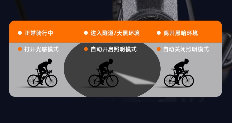 3.随光而动自动明暗,进入隧道/天黑环境,自动开启照明模式,离开黑暗环境,自动关闭照明模式;