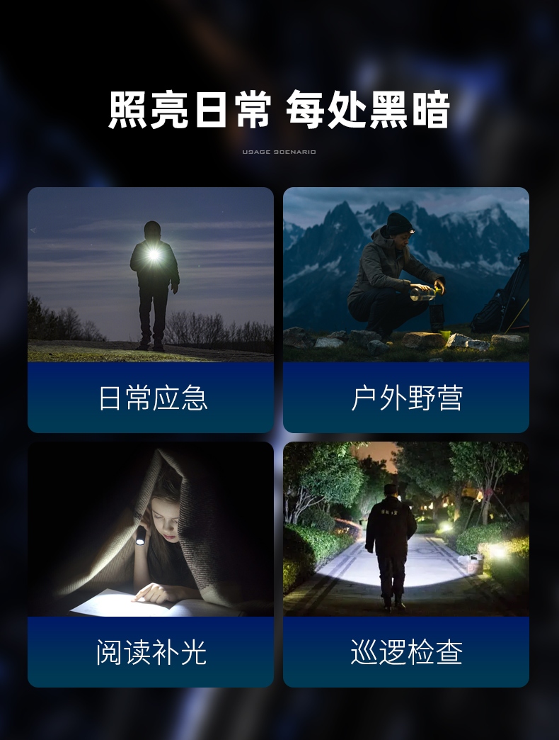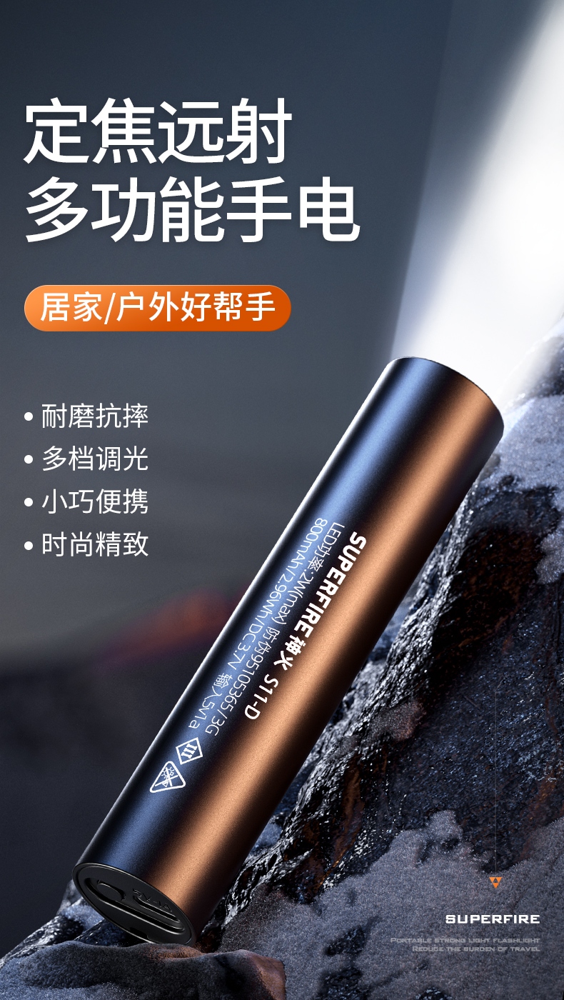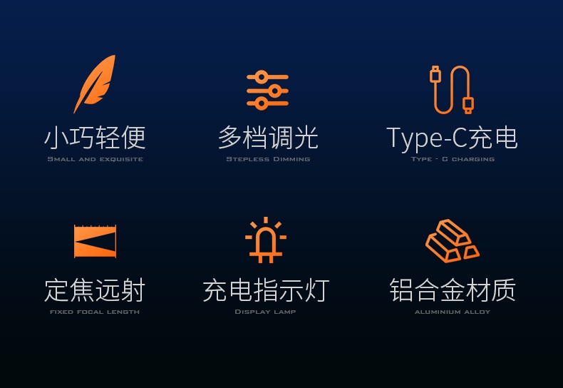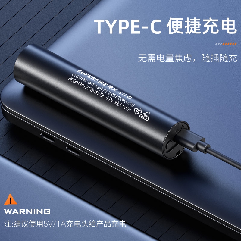 四档调光 Type-C充电 电量显示 铝合金筒身 持久续航 强力防水
