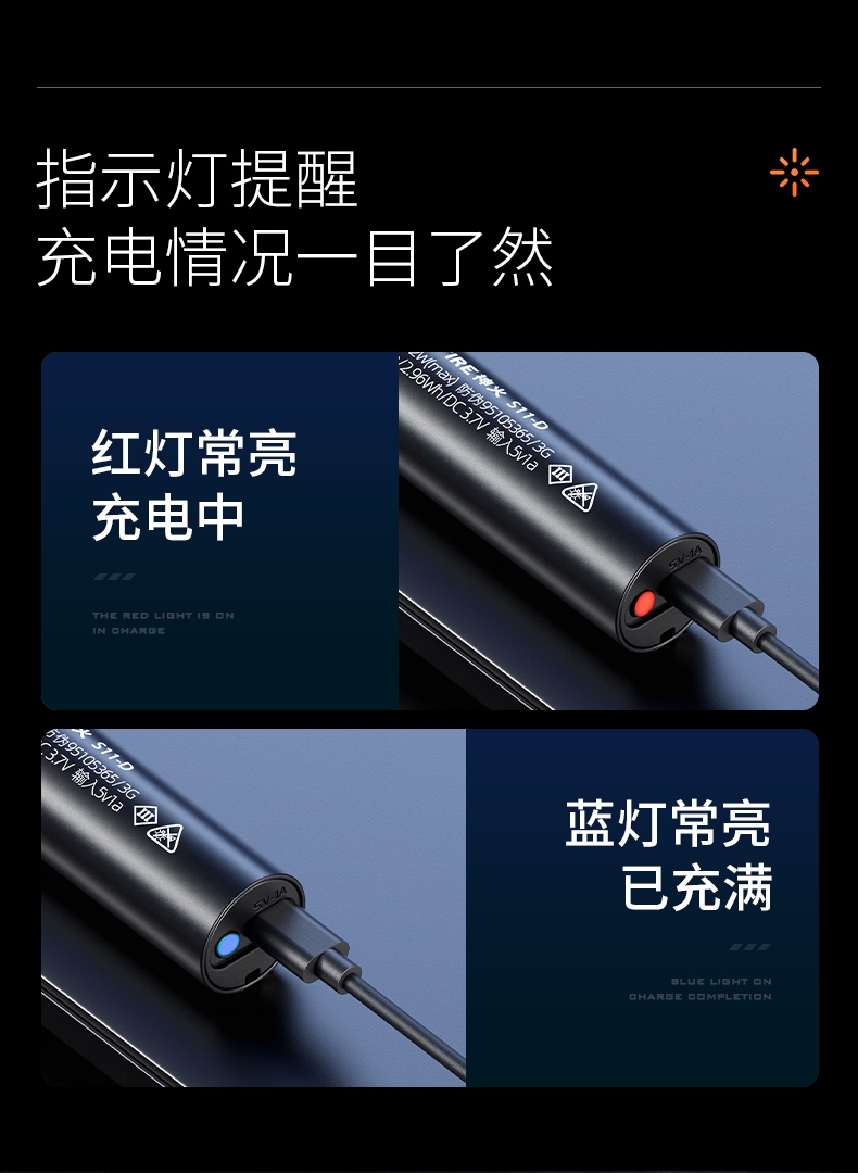 4、带充电指示灯,充电状态一目了然