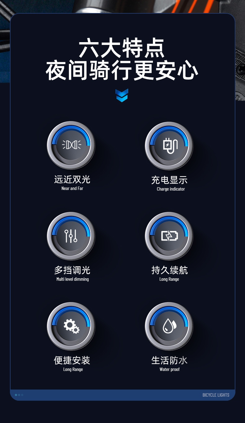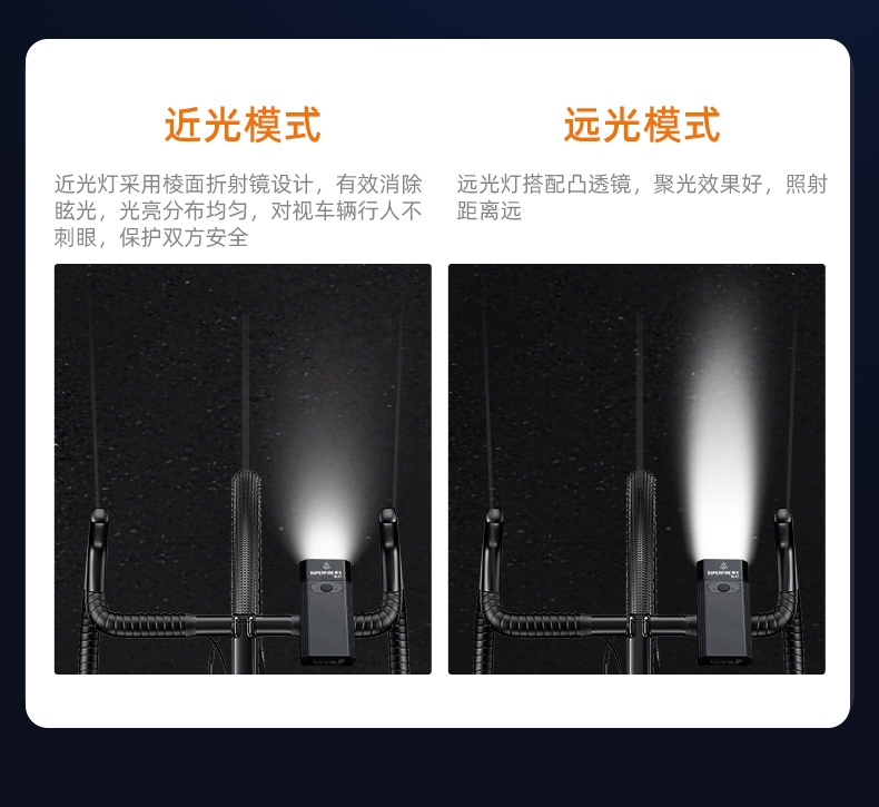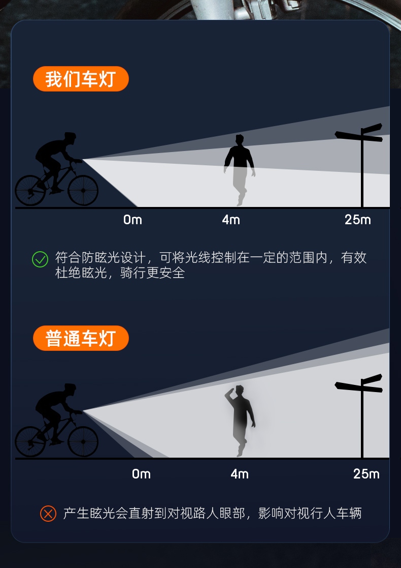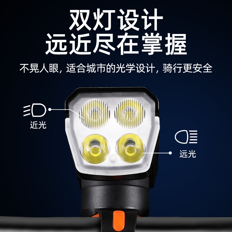 1、双灯设计,远近尽在掌握,不晃人眼,适合城市的光学设计,骑行更安全;