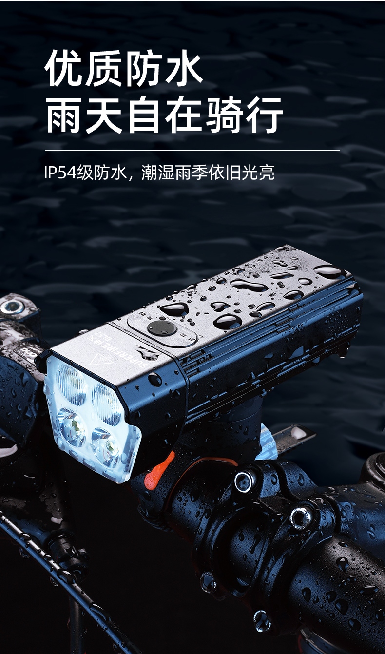 7、IP54级防水,雨天自在骑行,潮湿雨季依旧光亮。