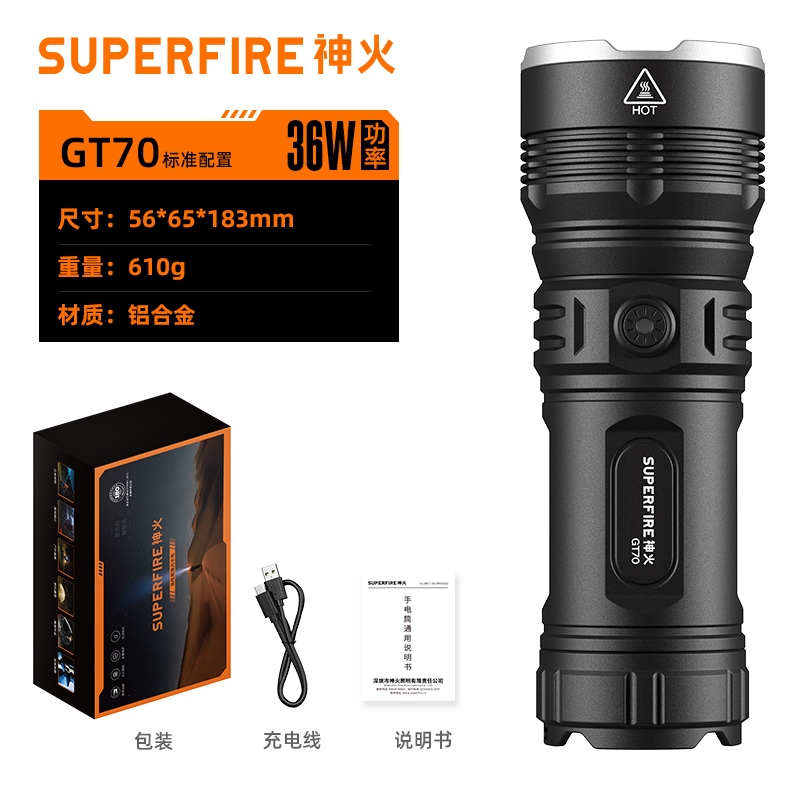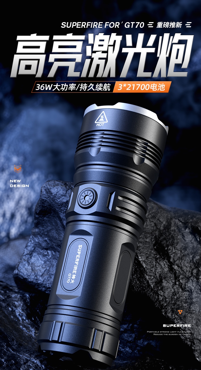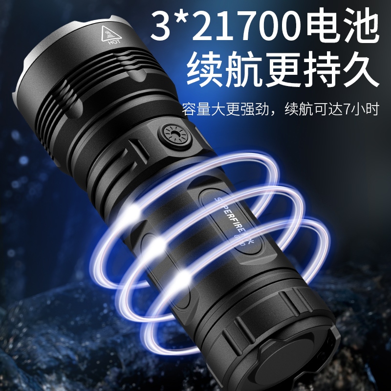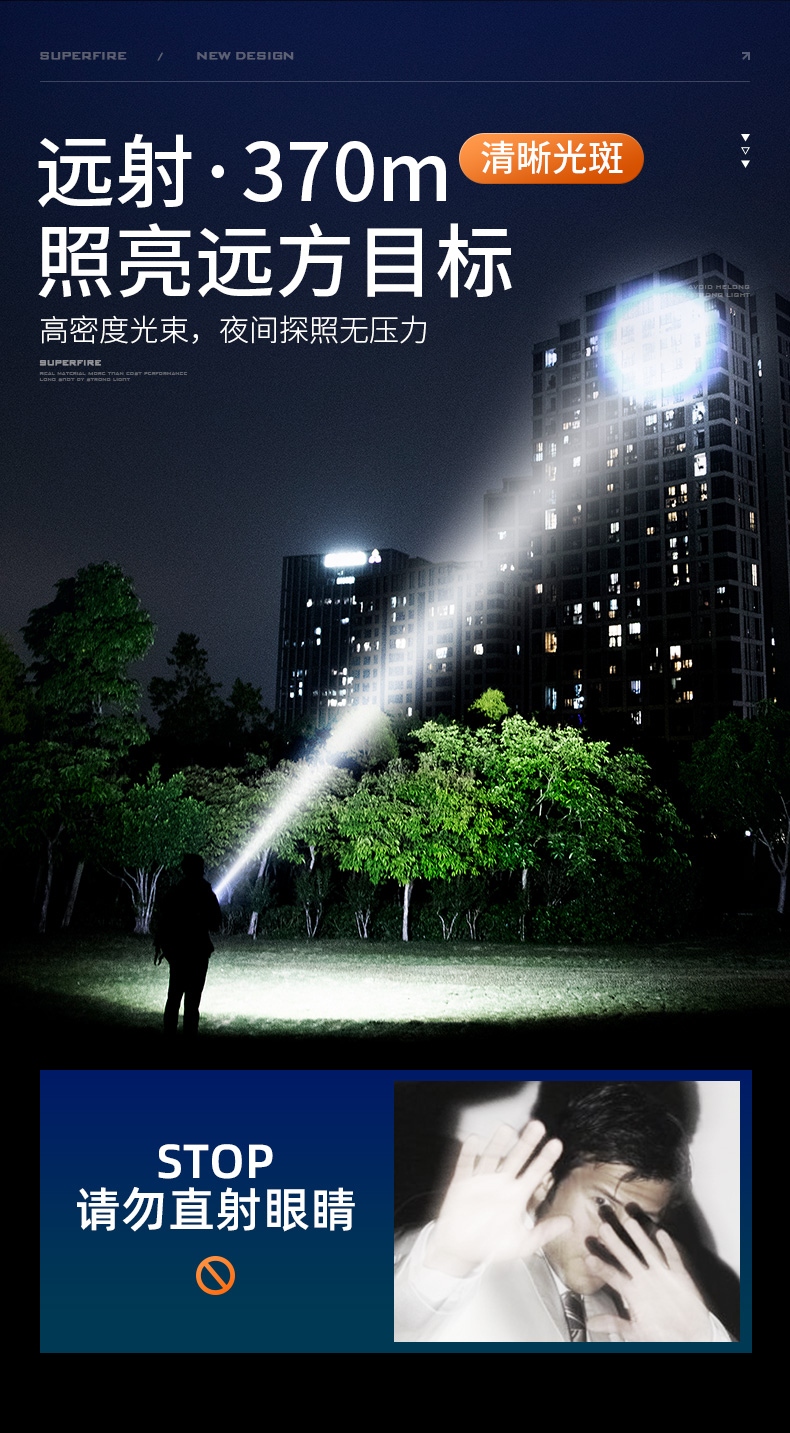 1、千米远射,射程更远,光斑更聚焦。 2、进口灯珠,亮度高,照明效果更好。 3、前后双按键,光源一键点亮,高亮瞬间开启。