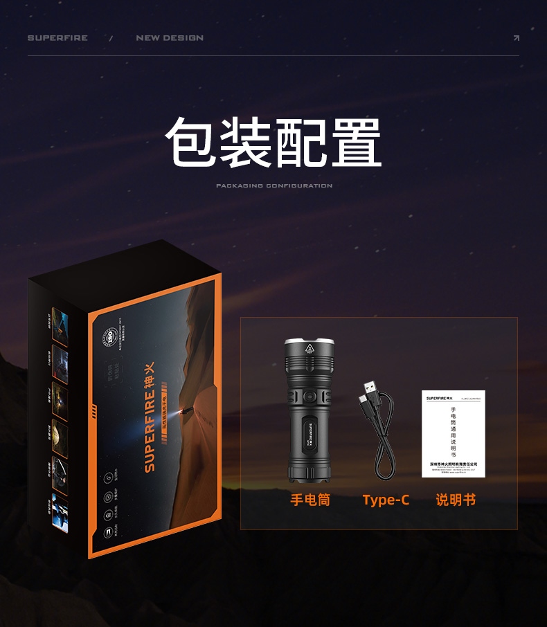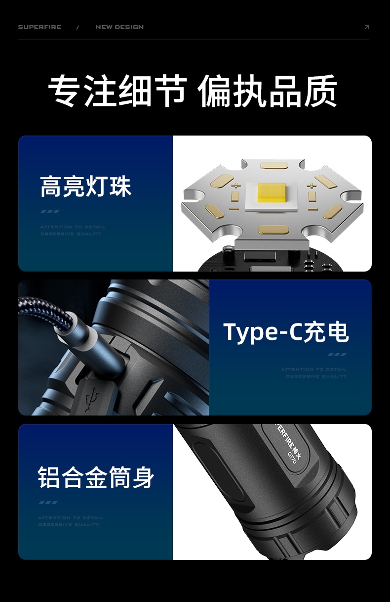 四档调光 Type-C充电 电量显示 铝合金筒身 持久续航 强力防水
