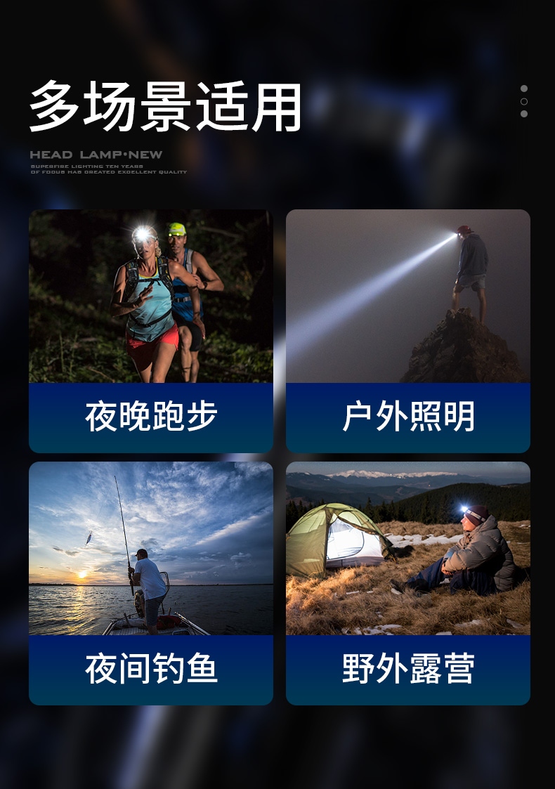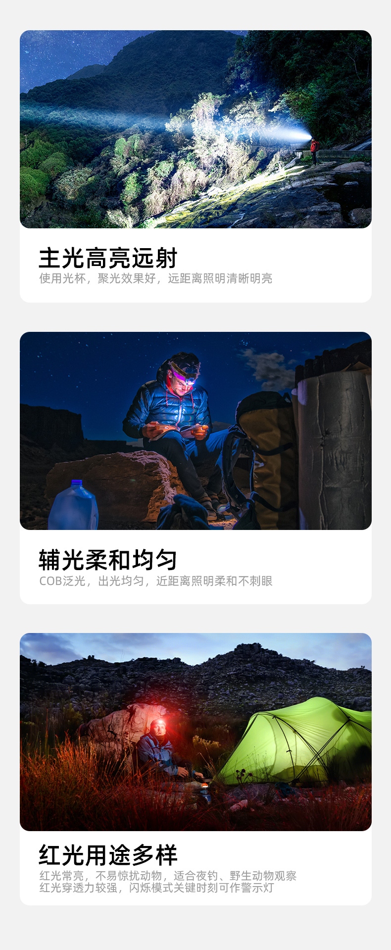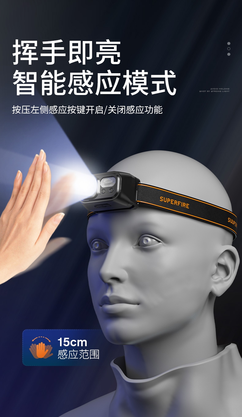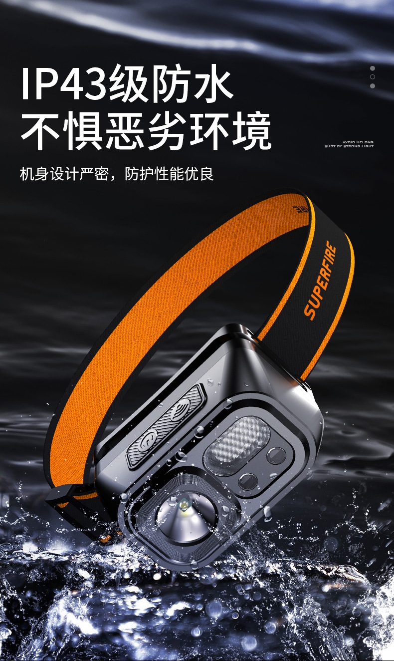 5、此款头灯款式潮流、设计小巧、携带方便、头带材质柔软、可自由拆卸、便于清洗。
