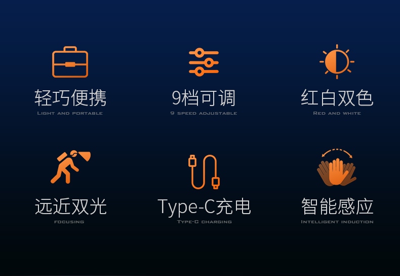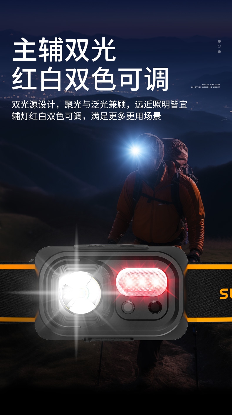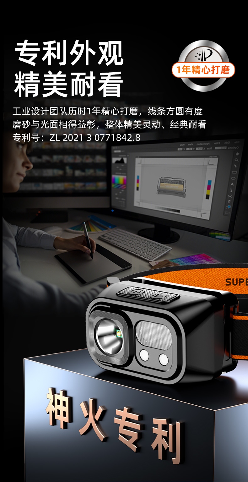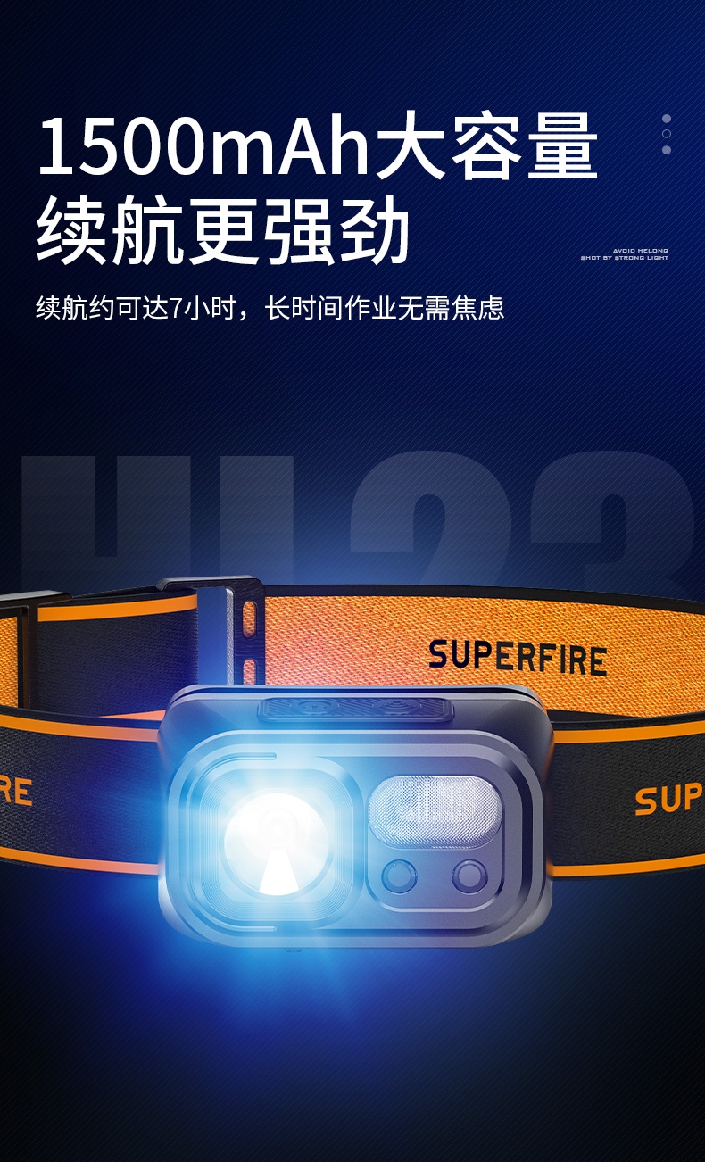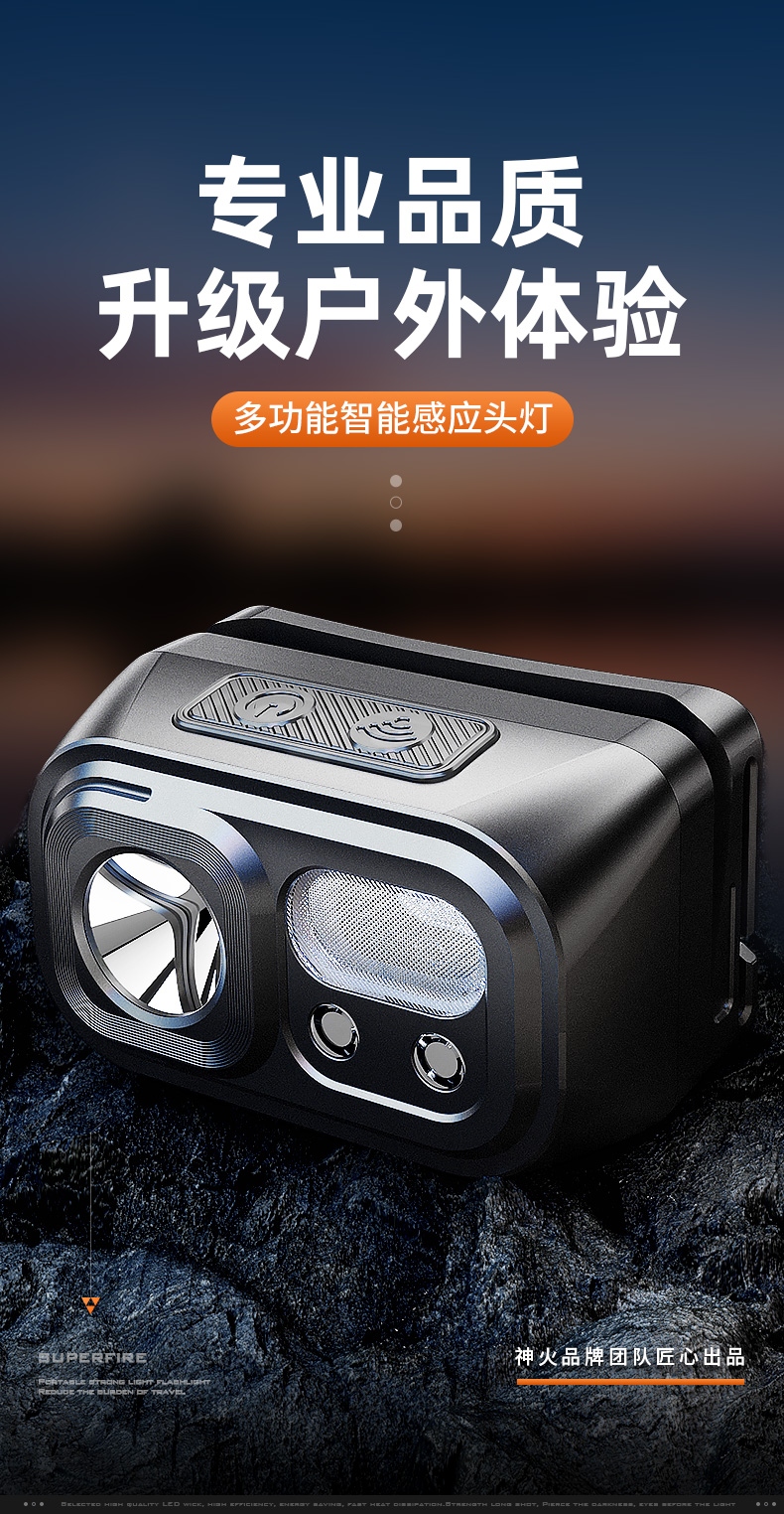 5、此款头灯款式潮流、设计小巧、携带方便、头带材质柔软、可自由拆卸、便于清洗。