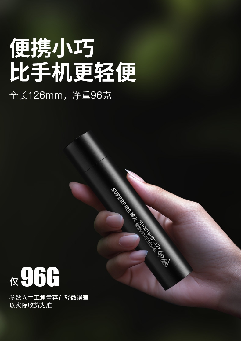 1、千米远射,射程更远,光斑更聚焦。 2、进口灯珠,亮度高,照明效果更好。 3、前后双按键,光源一键点亮,高亮瞬间开启。