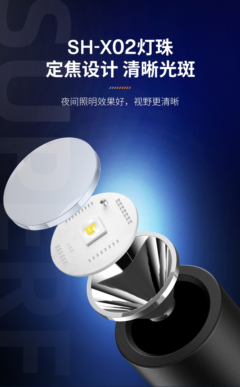 强光亮度,运动头灯,前后均衡设计,轻便不压头,可调节式头灯带,佩戴方便舒适,伸缩调焦,光照范围大,照射距离远,头灯角度调节,超90度角度随意调节,适宜各种环境使用