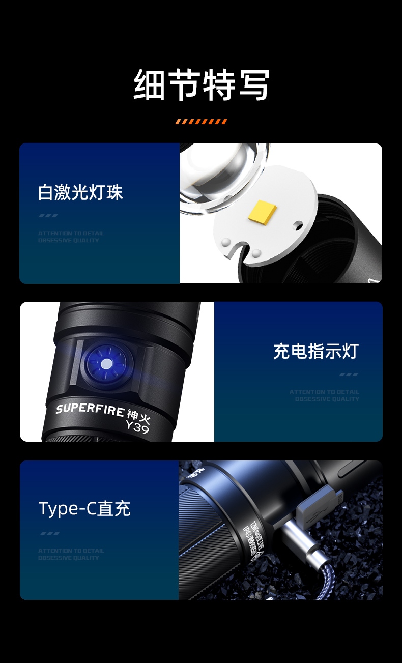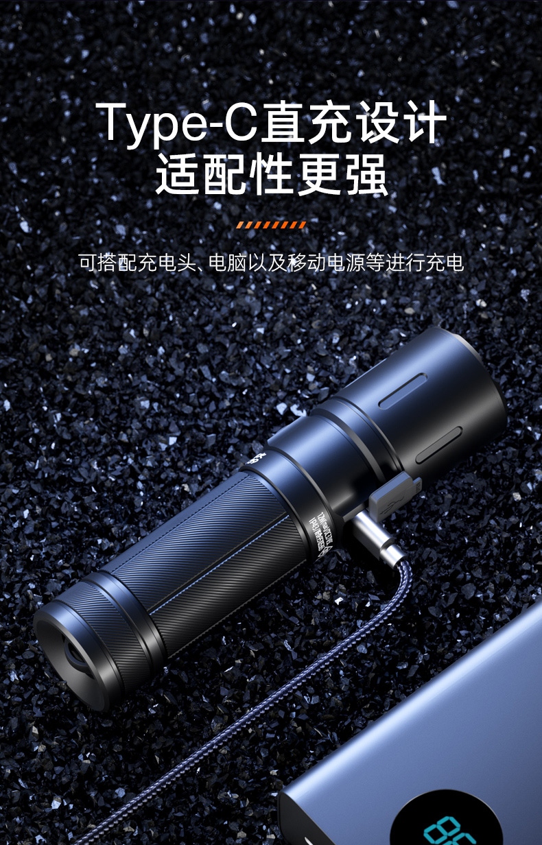 四档调光 Type-C充电 电量显示 铝合金筒身 持久续航 强力防水