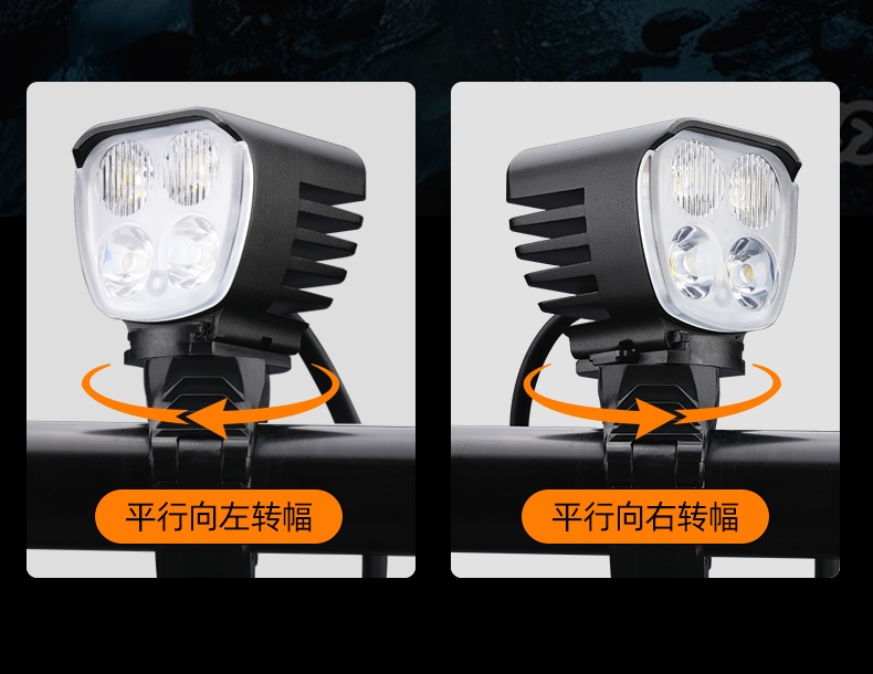 分体式安装大大减轻车头负重;独立电池包,充电无需拆车灯;高亮度1800LM,远近双光(可独立控制),大容量,车头可旋转。