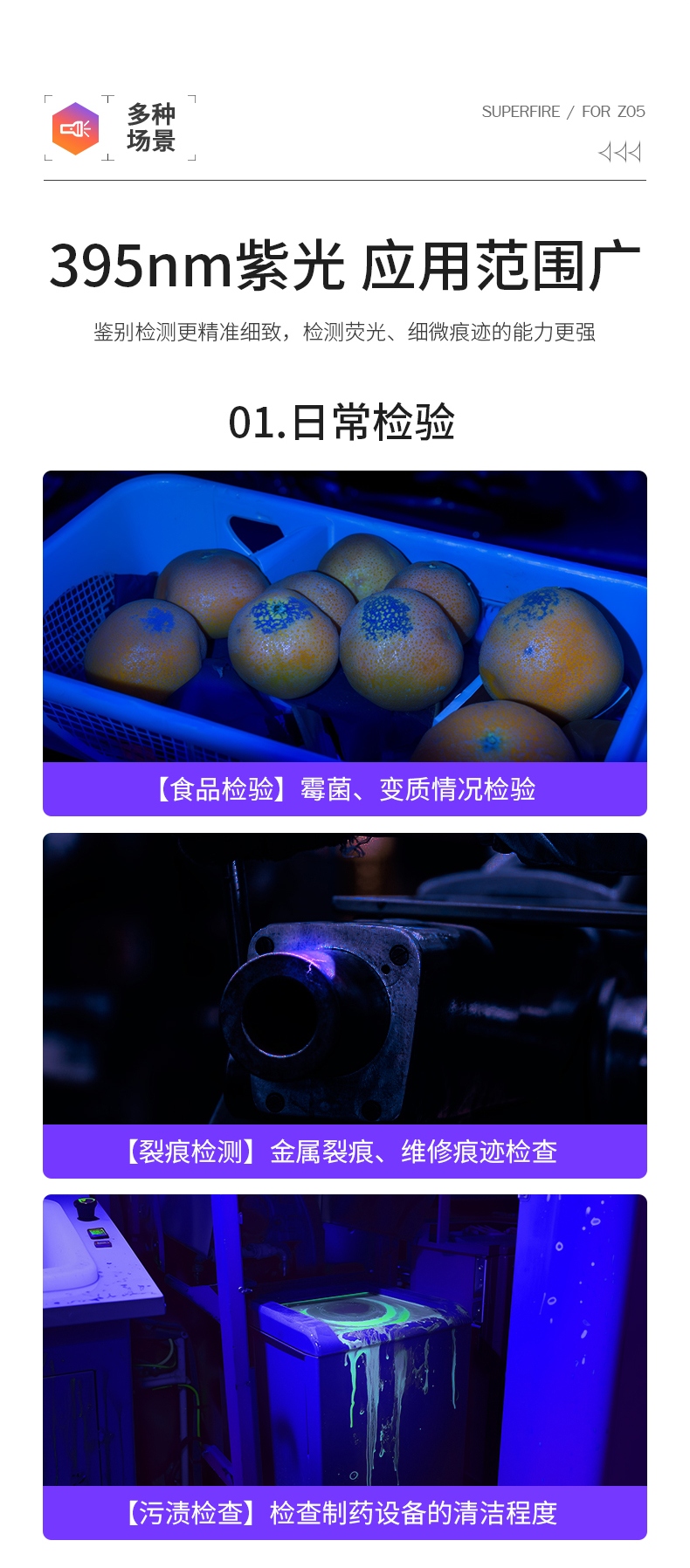 1、紫光手电:可用于验钞、识别荧光剂,宠物荧光检测,鉴别琥珀、蜜蜡,古玩修补鉴定。