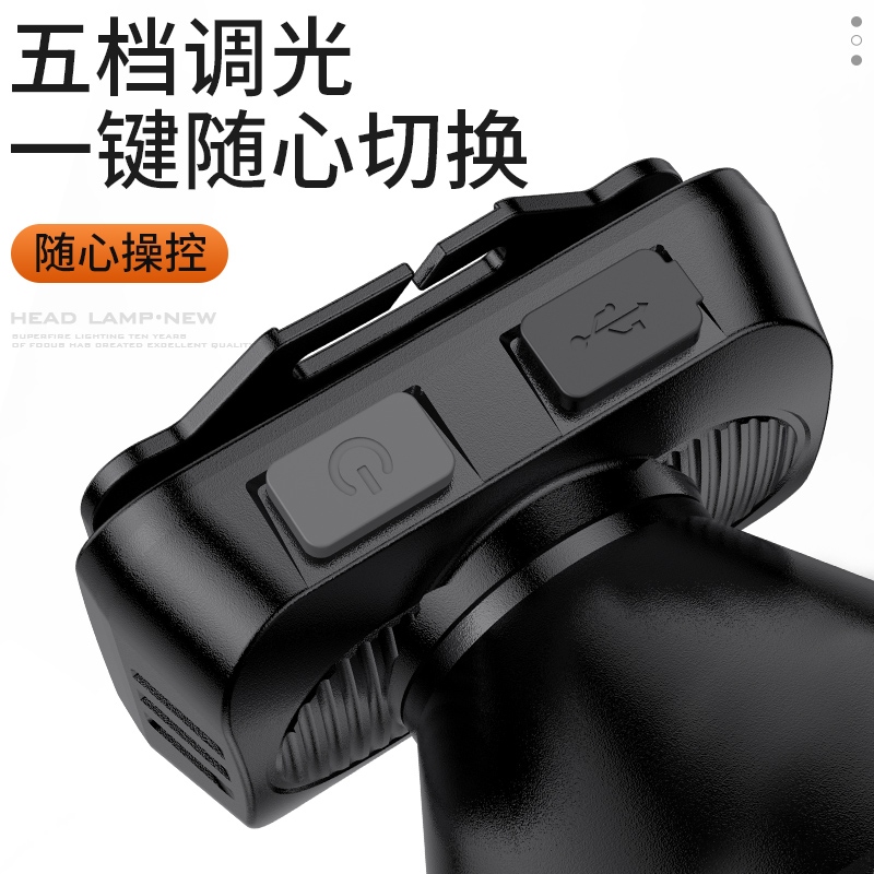 1、弱光、中光、强光、爆闪、SOS五挡使用模式,自由切换,可满足不同场景下的使用需求。 2、可调节式松紧带:佩戴方便舒适。 3、头灯角度调节:超90°角度随意调节,适宜各环境使用。