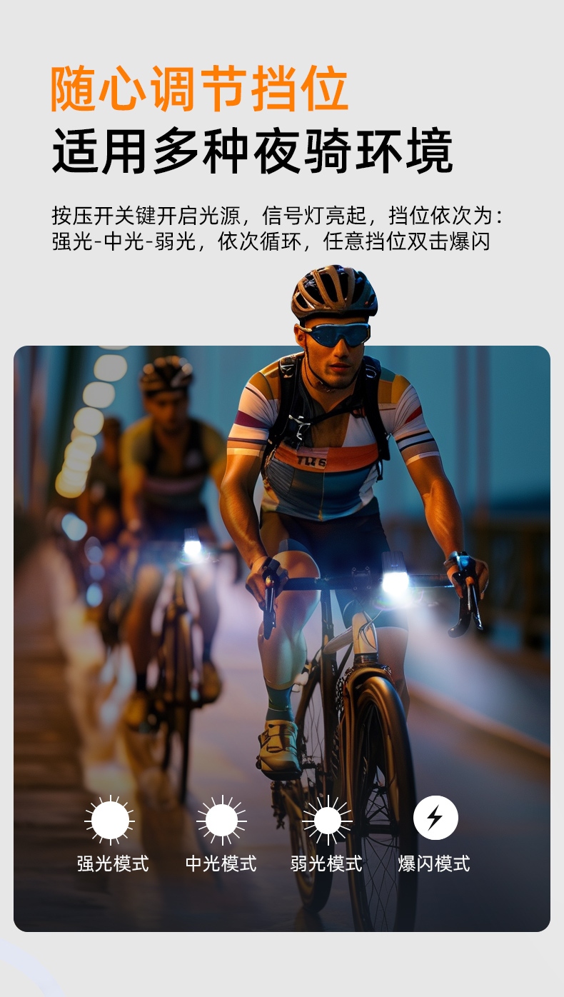 2、随心调节挡位,适用多种夜骑环境;