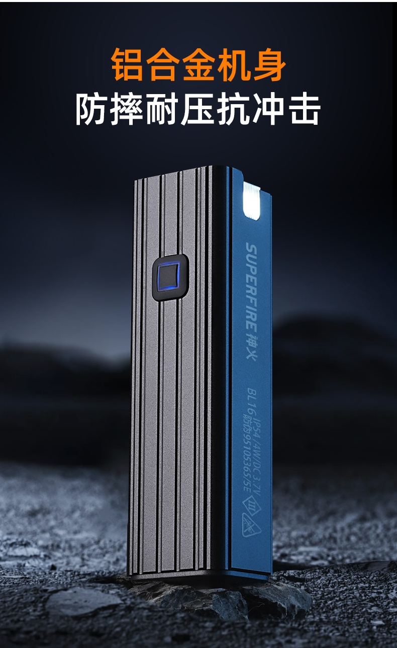 5、铝合金机身,防摔耐压抗冲击;