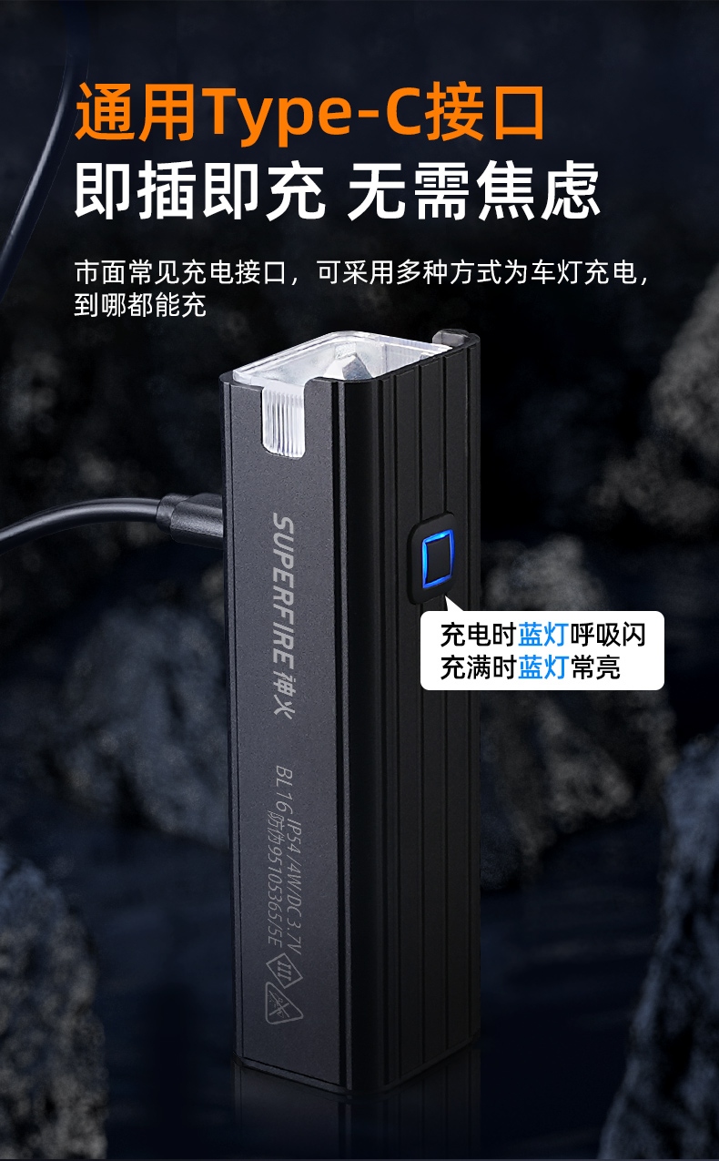四档调光 Type-C充电 电量显示 铝合金筒身 持久续航 强力防水
