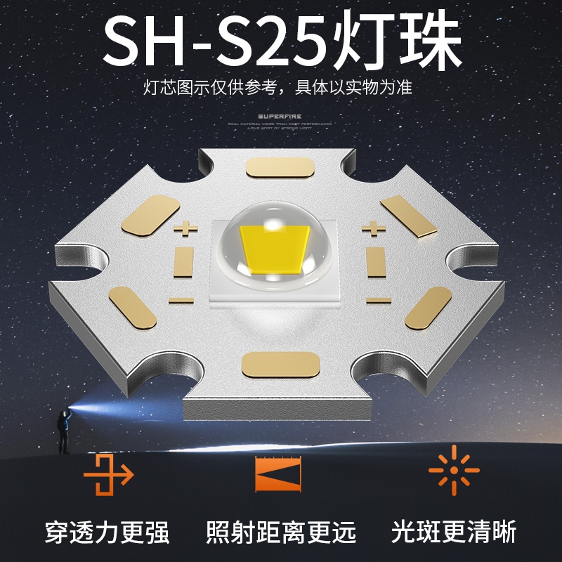 1、千米远射,射程更远,光斑更聚焦。 2、进口灯珠,亮度高,照明效果更好。 3、前后双按键,光源一键点亮,高亮瞬间开启。