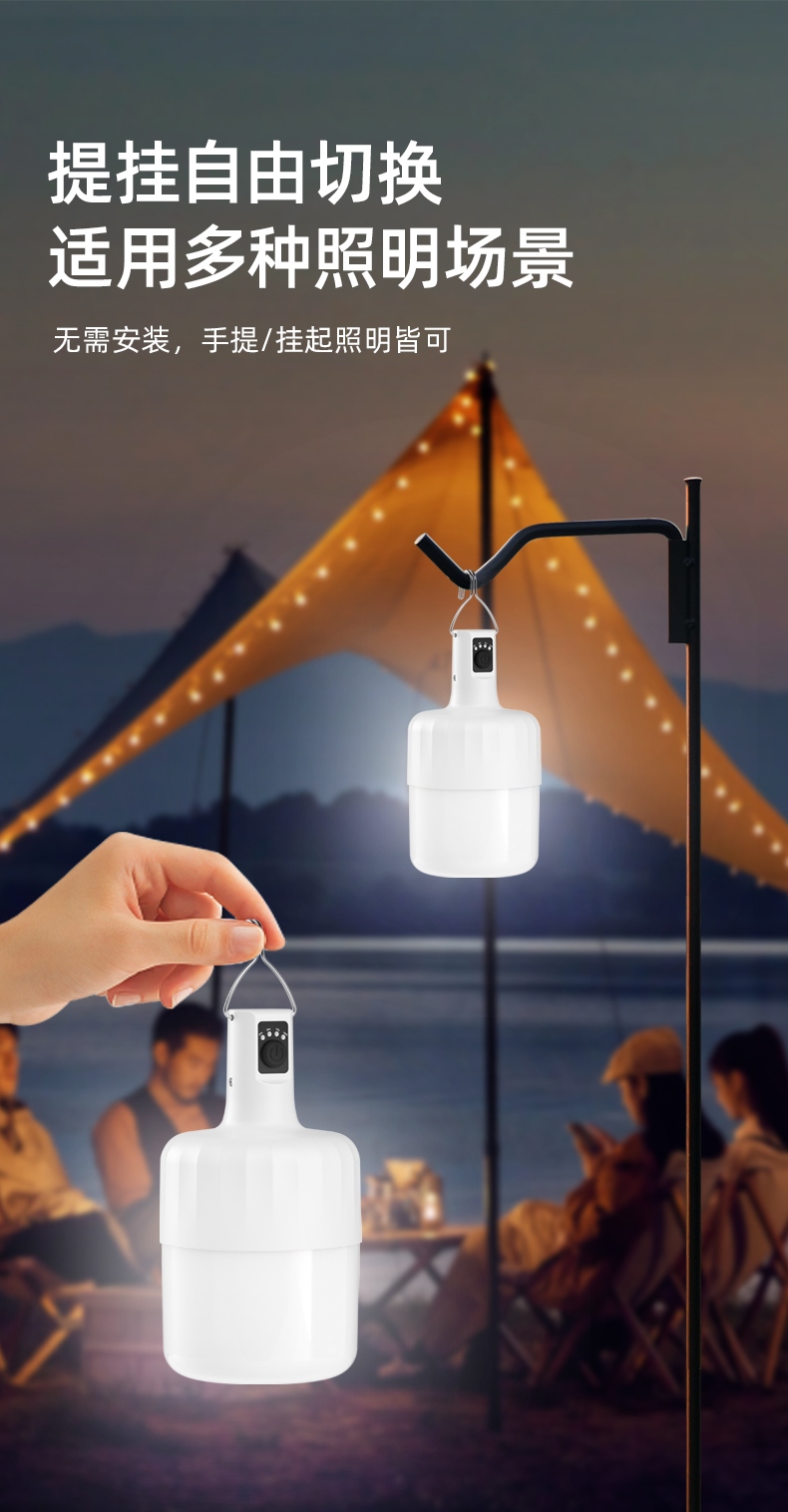 2.多样化充电,使用方便:可使用充电器、充电宝、电脑等设备为灯具充电。充电时可边充电边使用照明功能