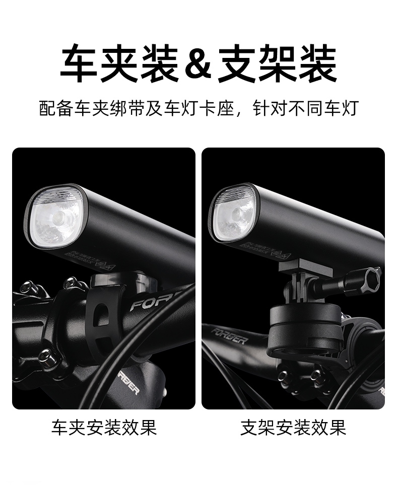 6、车夹装&支架装,配备车夹绑带及车灯卡座,针对不同车灯;