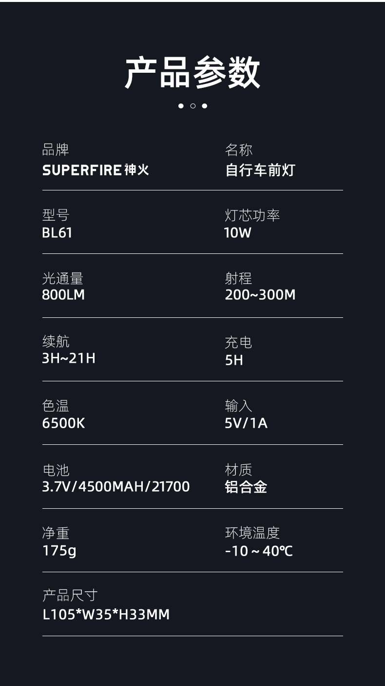 1、800流明进发爆亮,路况尽收眼底,光亮覆盖前路,射程可达300m,从容面对各种路况;