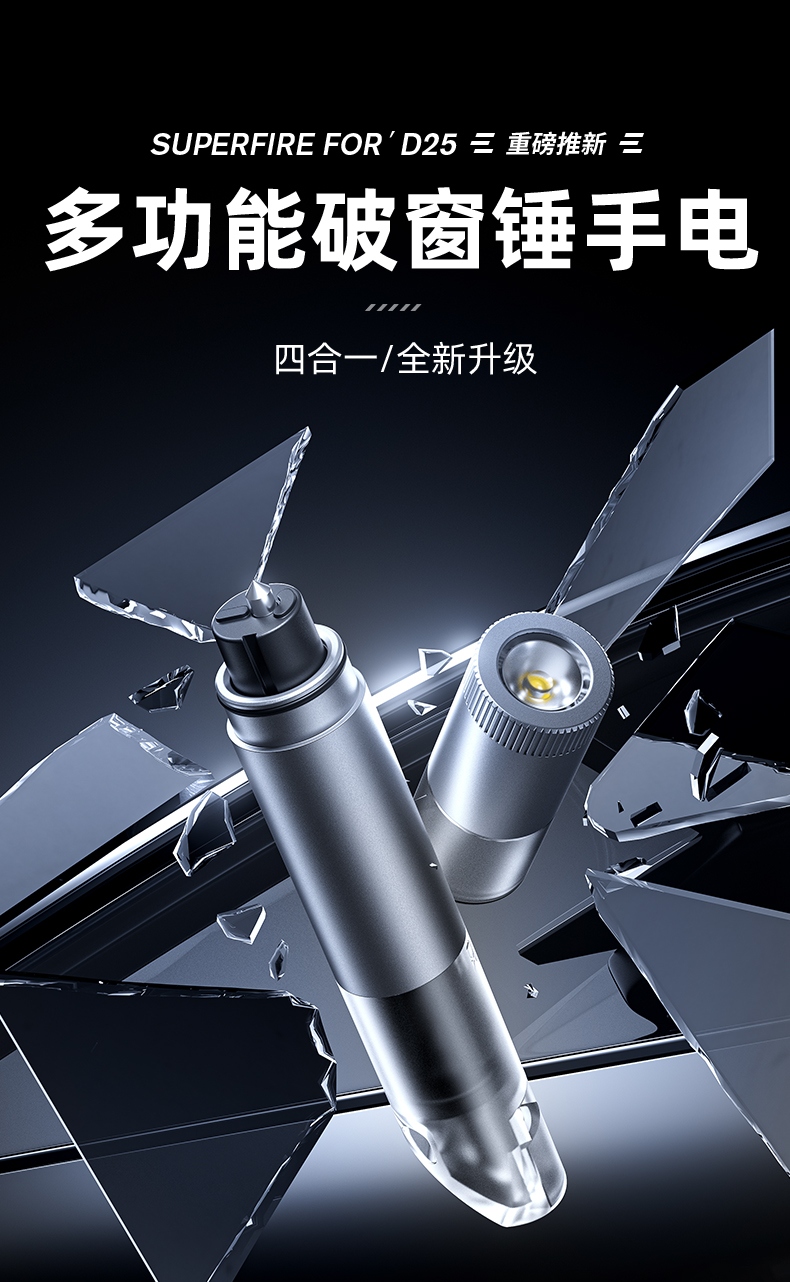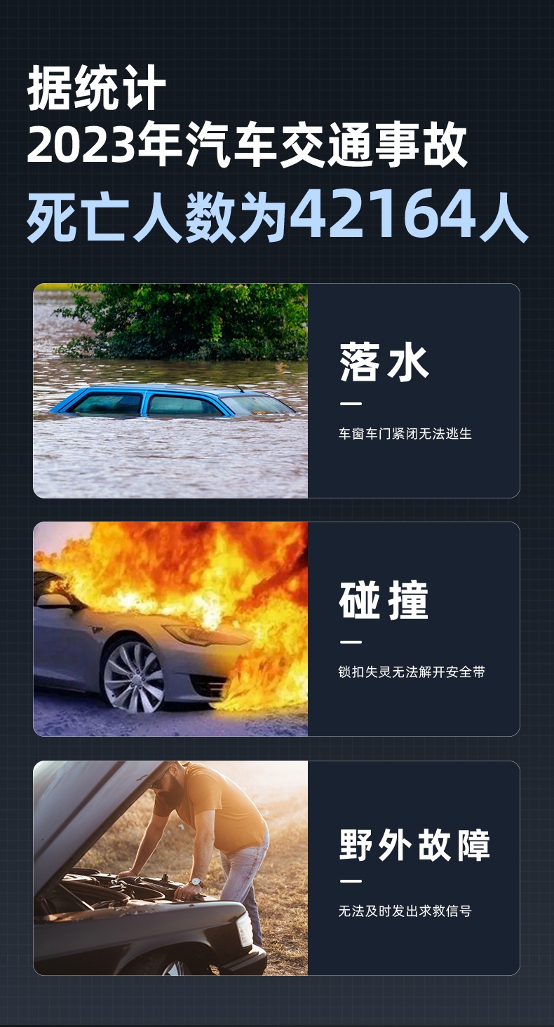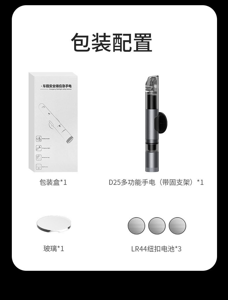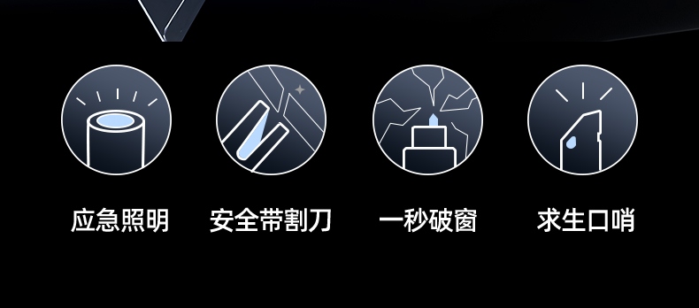 1、高硬度破窗锤,紧急情况下,破窗自救,车内应急必备。
