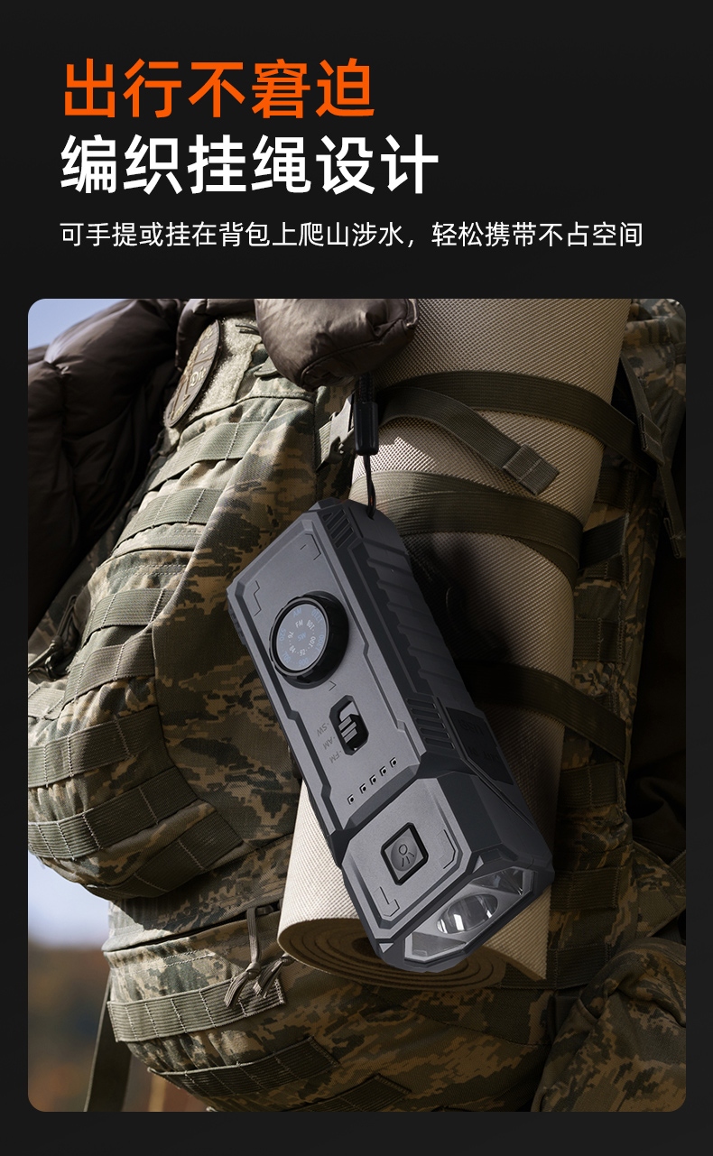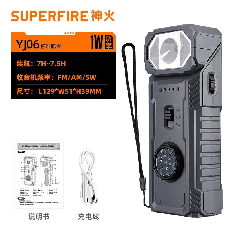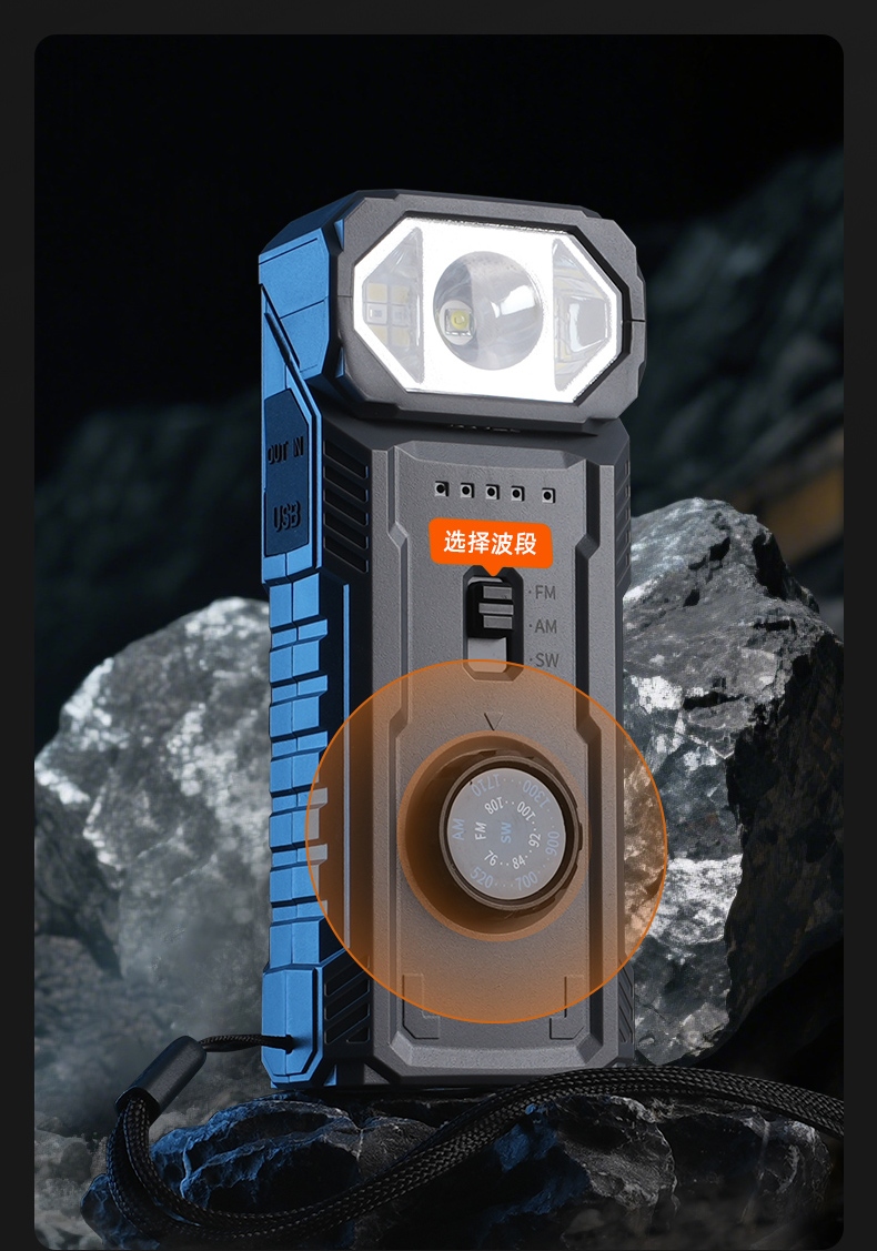 手摇发电(将产品手摇发电手柄打开,以180转/分钟匀速顺时针或逆时针旋转对本机充电,充电过程中电量指示灯闪烁)
