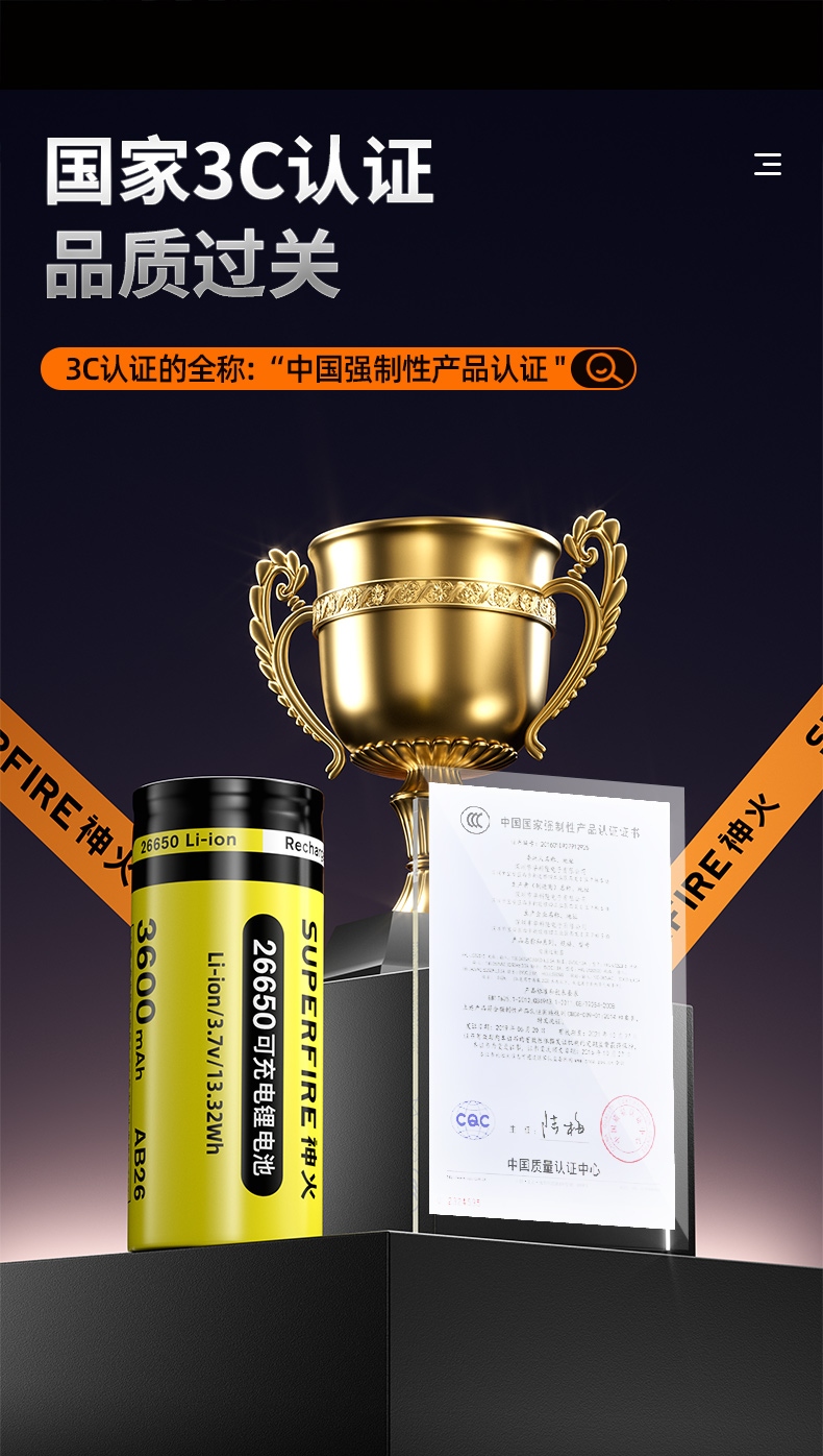 1、3C认证实标电池,真实续航,拒绝虚标,证件齐全安全有保障、澎湃性能、标准电压动力强劲;