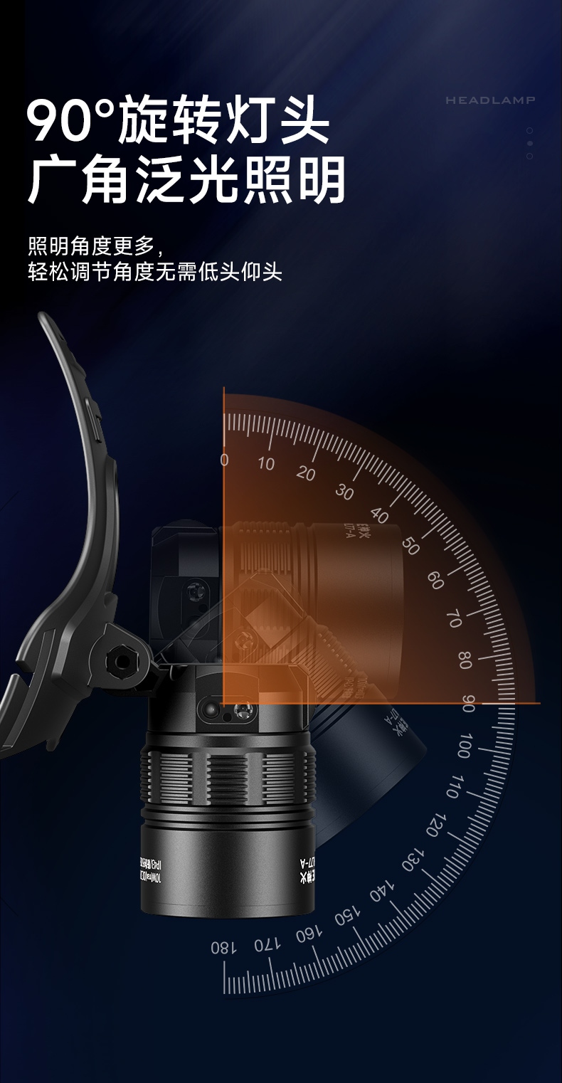 5.头灯角度调节:超90°角度随意调节,适宜各环境使用