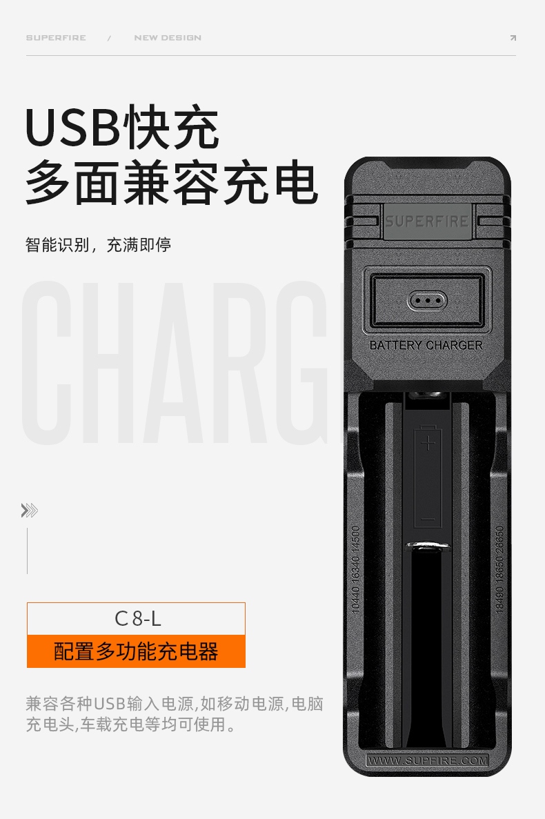 1.单击左边开关开启感应功能,同时开启强光档,续按关闭感应功能(关闭感应功能,光源不会关闭),当感应功能开启时,单击右边开关可正常调节档位。 2.多样化充电,使用方便:设有Type-c充电口,可使用充电器、充电宝、电脑等设备为灯具充电。 3.电量显示:实时