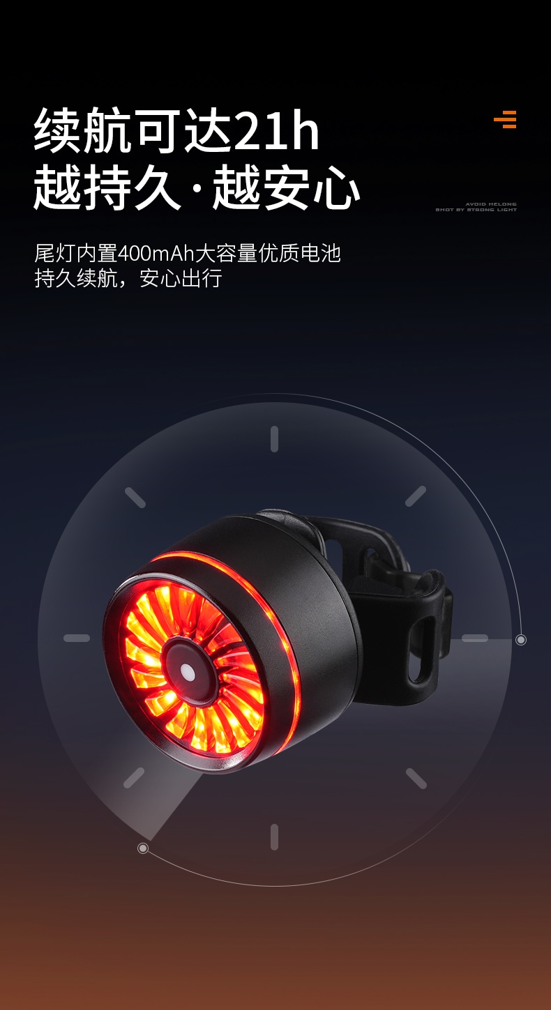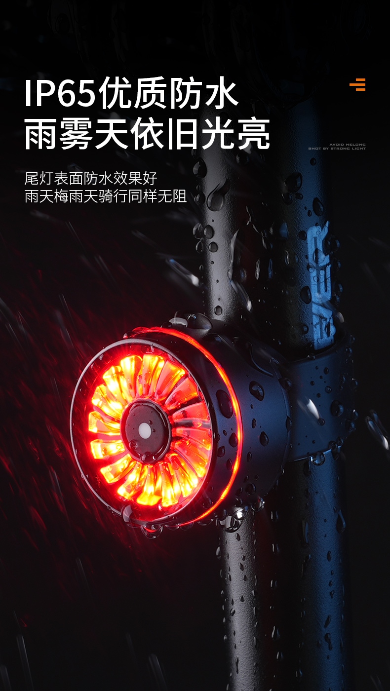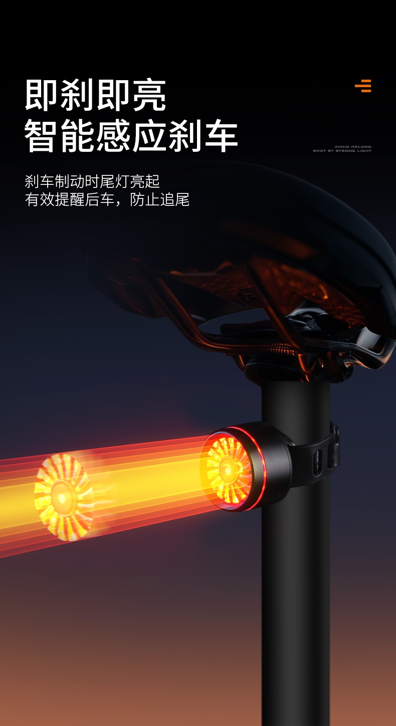 2、刹车感应:刹车感应会随灯具开启自动启动,灯具关闭时也随之关闭;