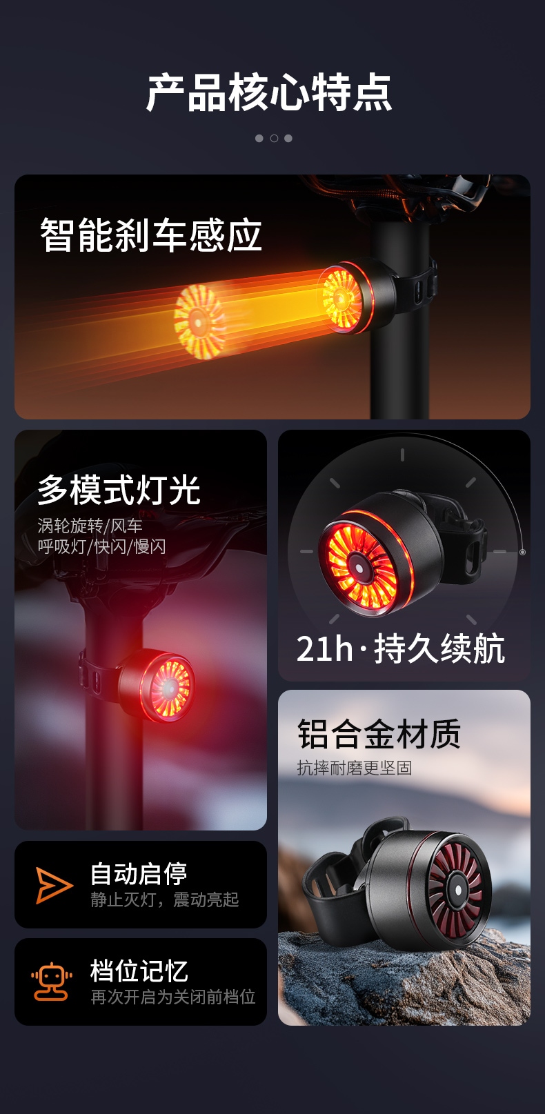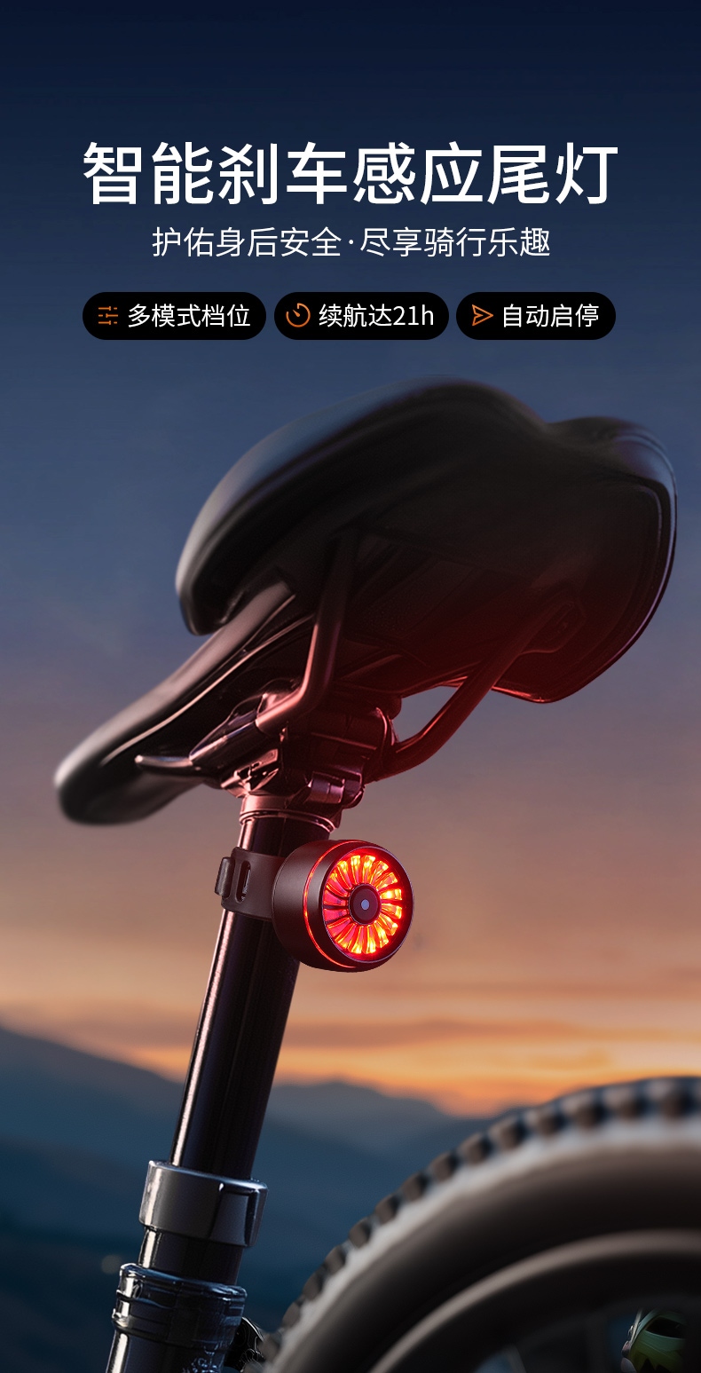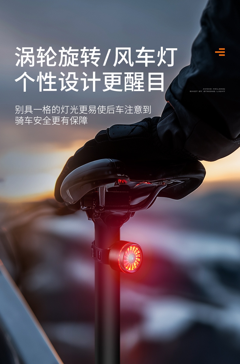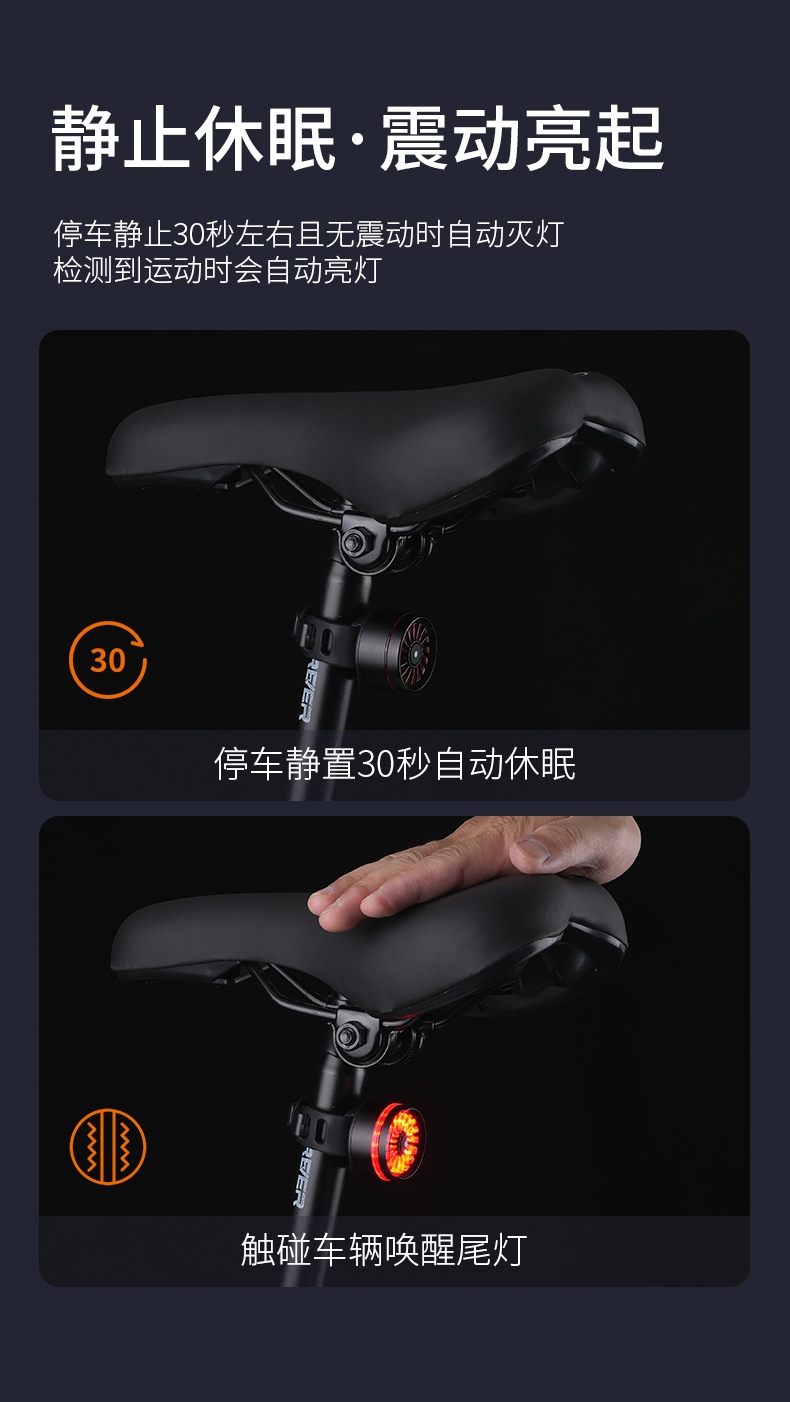2、刹车感应:刹车感应会随灯具开启自动启动,灯具关闭时也随之关闭;