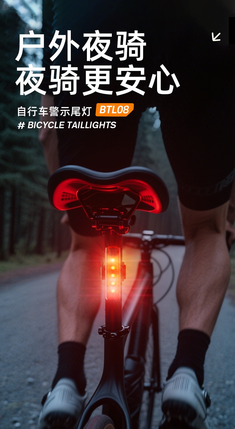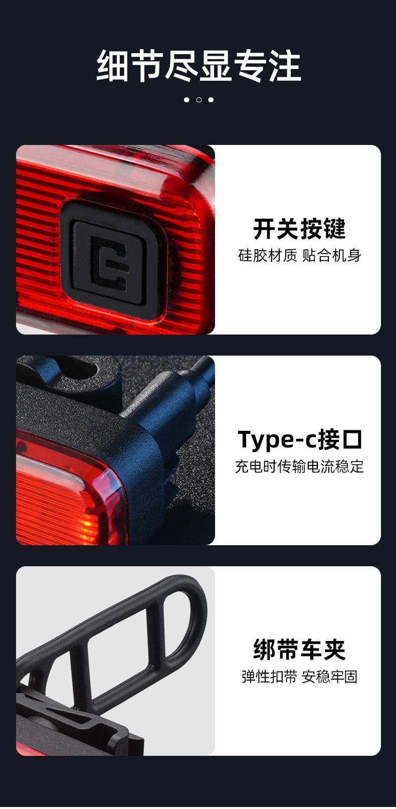 1、多种灯光模式,一键切换,适用多种骑行场景;