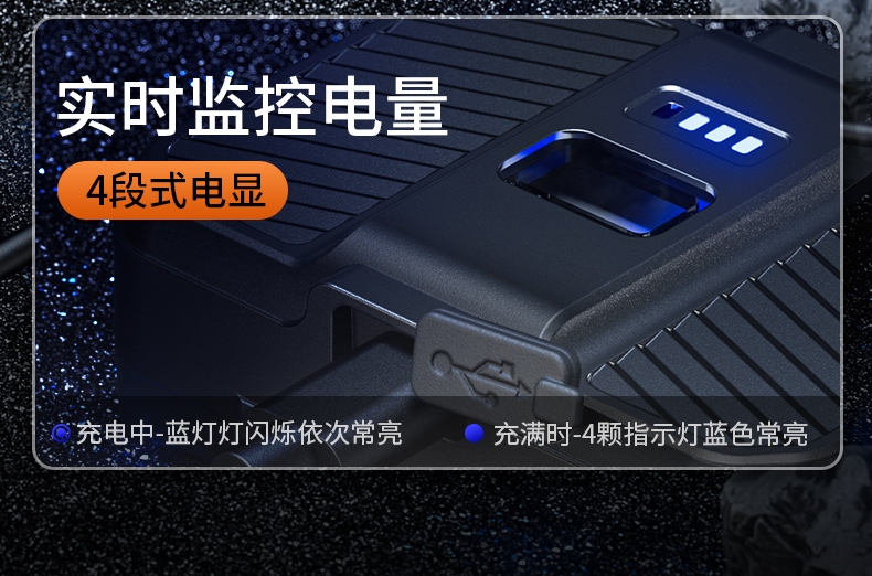 1.单击左边开关开启感应功能,同时开启强光档,续按关闭感应功能(关闭感应功能,光源不会关闭),当感应功能开启时,单击右边开关可正常调节档位。 2.多样化充电,使用方便:设有Type-c充电口,可使用充电器、充电宝、电脑等设备为灯具充电。 3.电量显示:实时