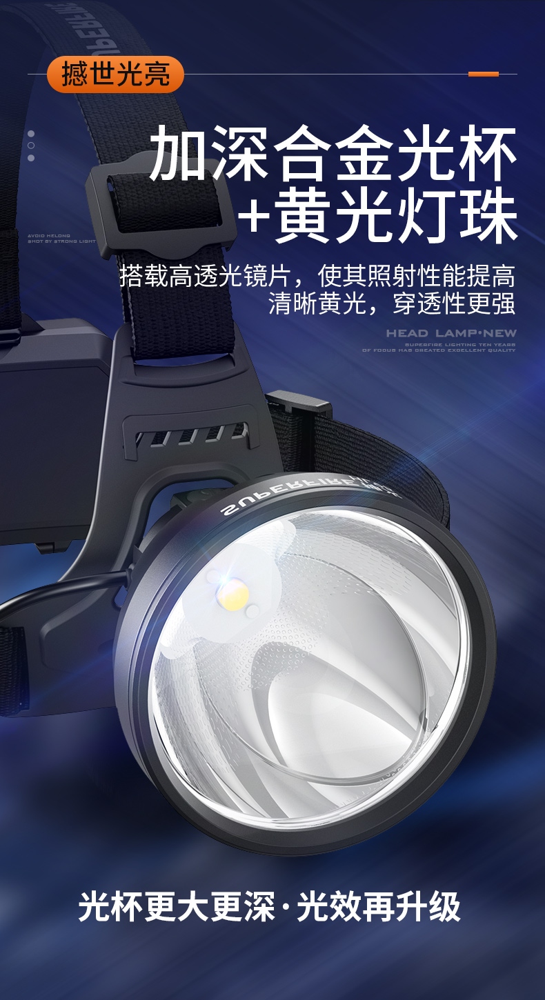 强光亮度,运动头灯,前后均衡设计,轻便不压头,可调节式头灯带,佩戴方便舒适,伸缩调焦,光照范围大,照射距离远,头灯角度调节,超90度角度随意调节,适宜各种环境使用