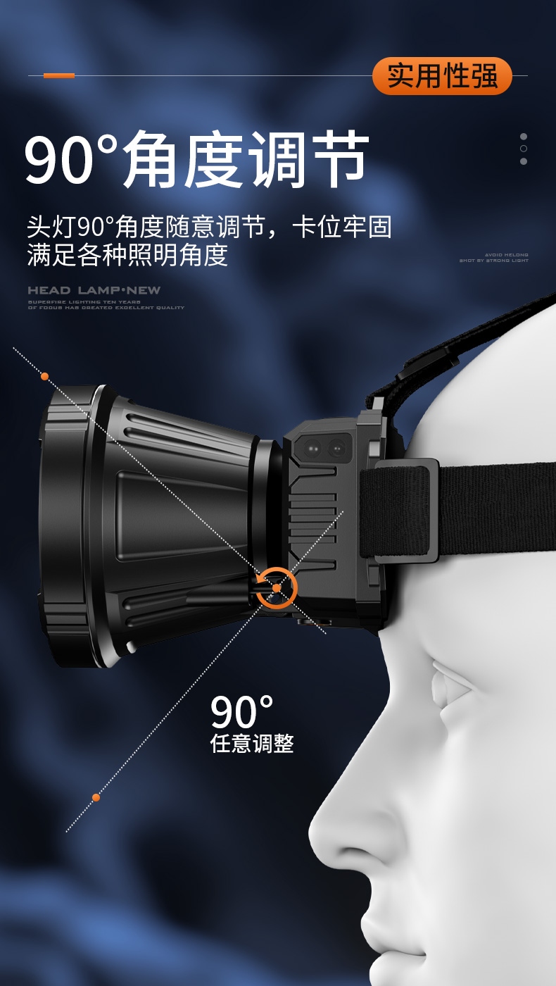 4、头灯角度调节:超90°角度随意调节,适宜各环境使用。