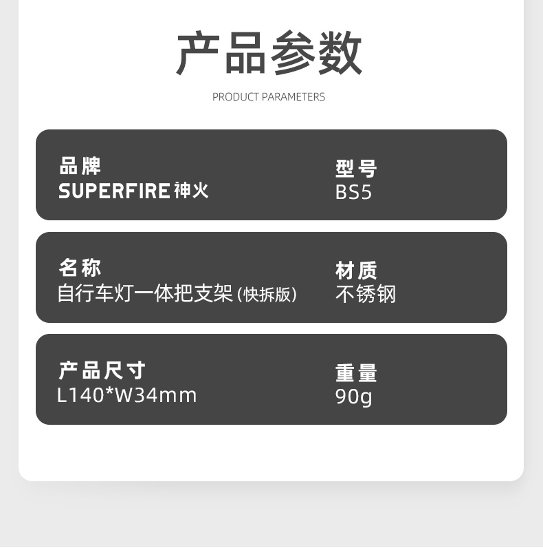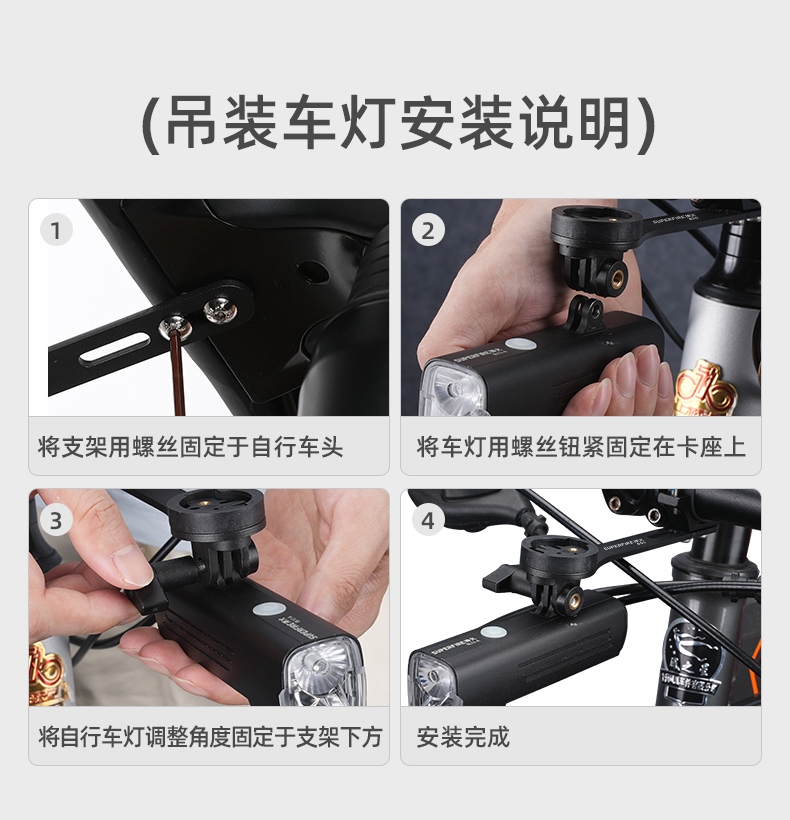 3、六角螺丝便捷锁定,配置下挂接头和手电夹,车灯类型随心选择;