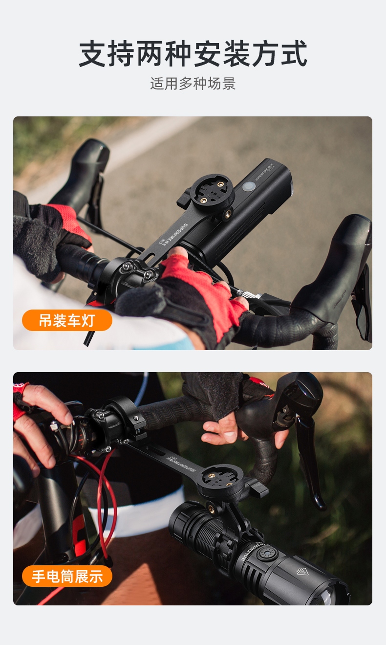 轻量化设计对车头平衡无影响,轻便牢固;本支架采用不锈钢材质,具备轻巧属性的同时更 坚实耐用,适用多种场景支持两种安装方式;