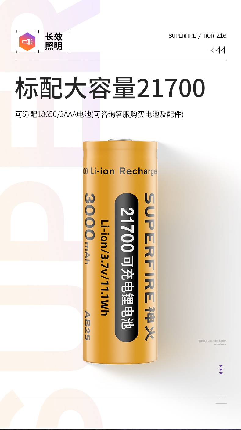 1、千米远射,射程更远,光斑更聚焦。 2、进口灯珠,亮度高,照明效果更好。 3、前后双按键,光源一键点亮,高亮瞬间开启。