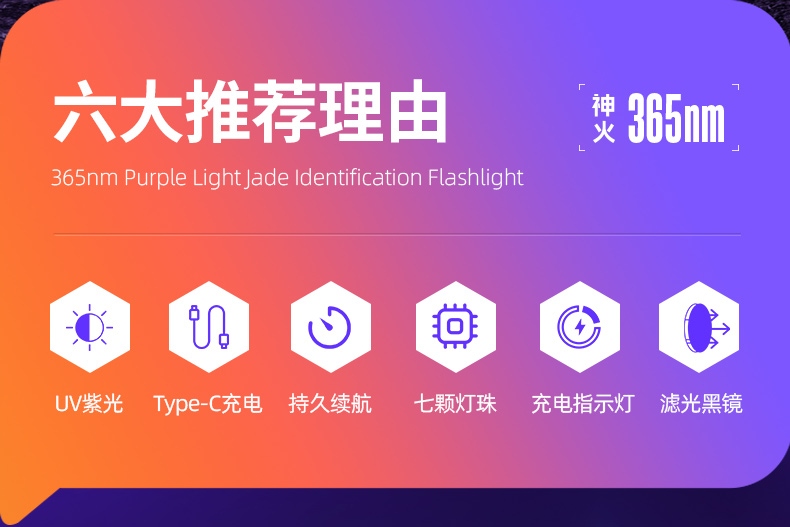 5、365nm紫光灯珠,波长短,穿透性更强。