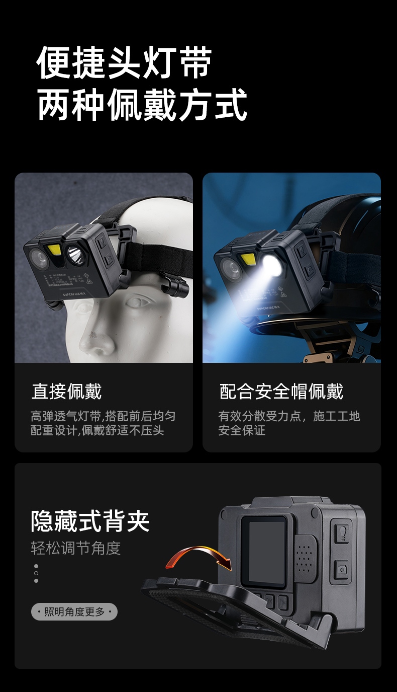 强光亮度,运动头灯,前后均衡设计,轻便不压头,可调节式头灯带,佩戴方便舒适,伸缩调焦,光照范围大,照射距离远,头灯角度调节,超90度角度随意调节,适宜各种环境使用