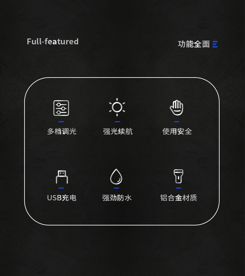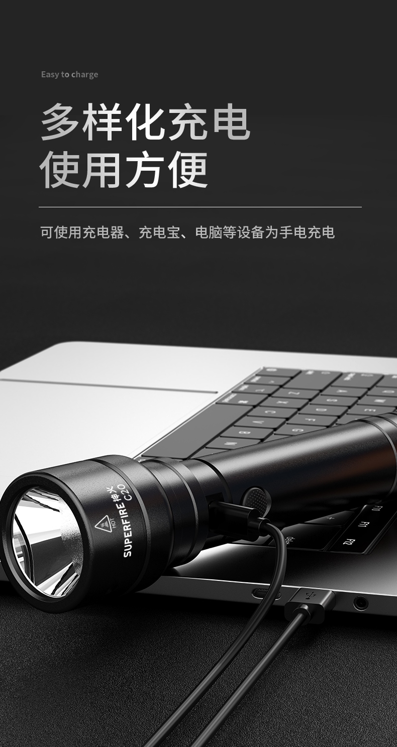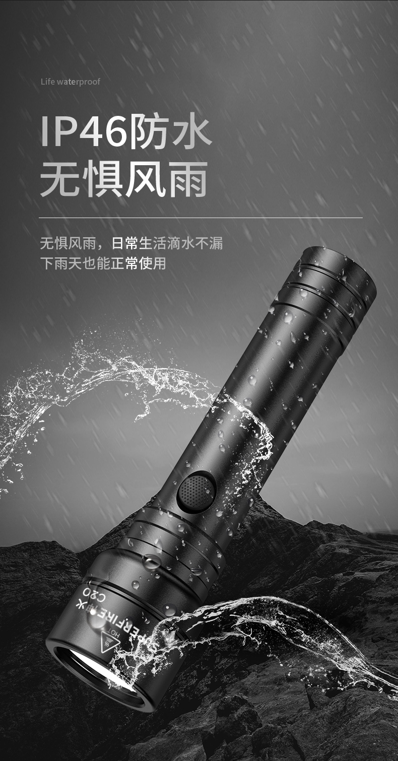 四档调光 Type-C充电 电量显示 铝合金筒身 持久续航 强力防水