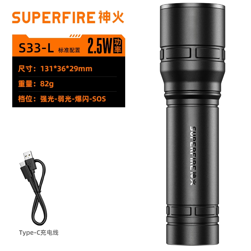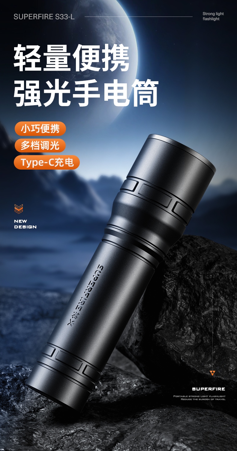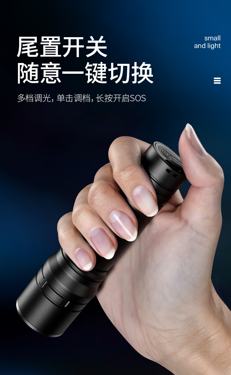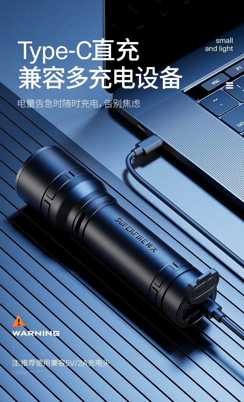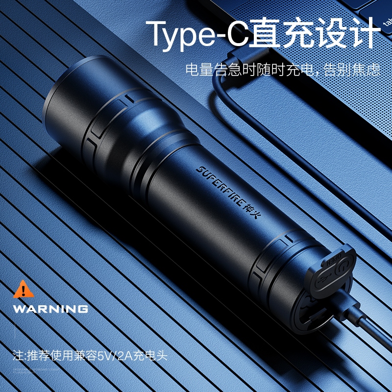 四档调光 Type-C充电 电量显示 铝合金筒身 持久续航 强力防水